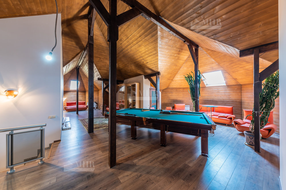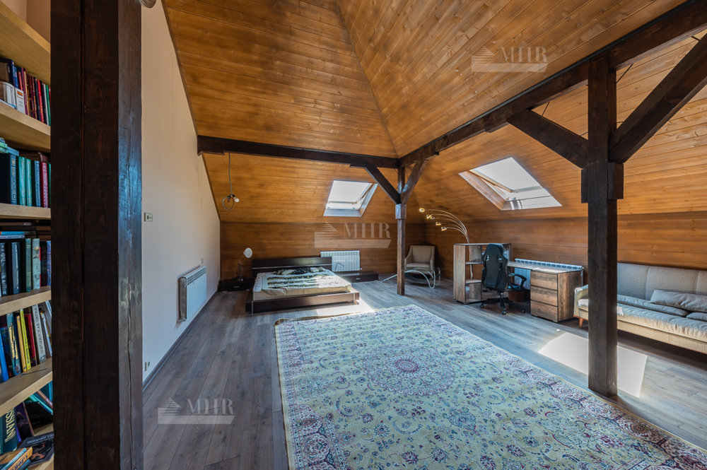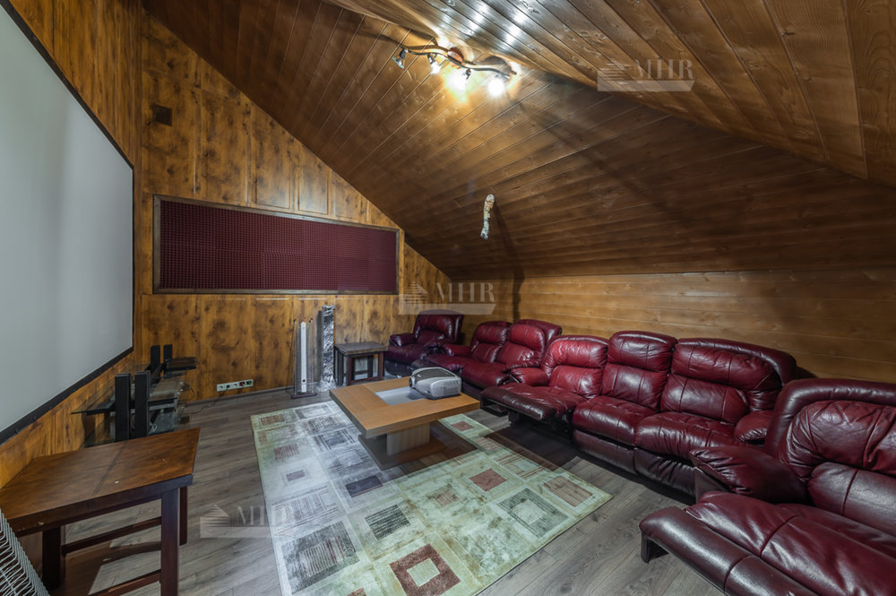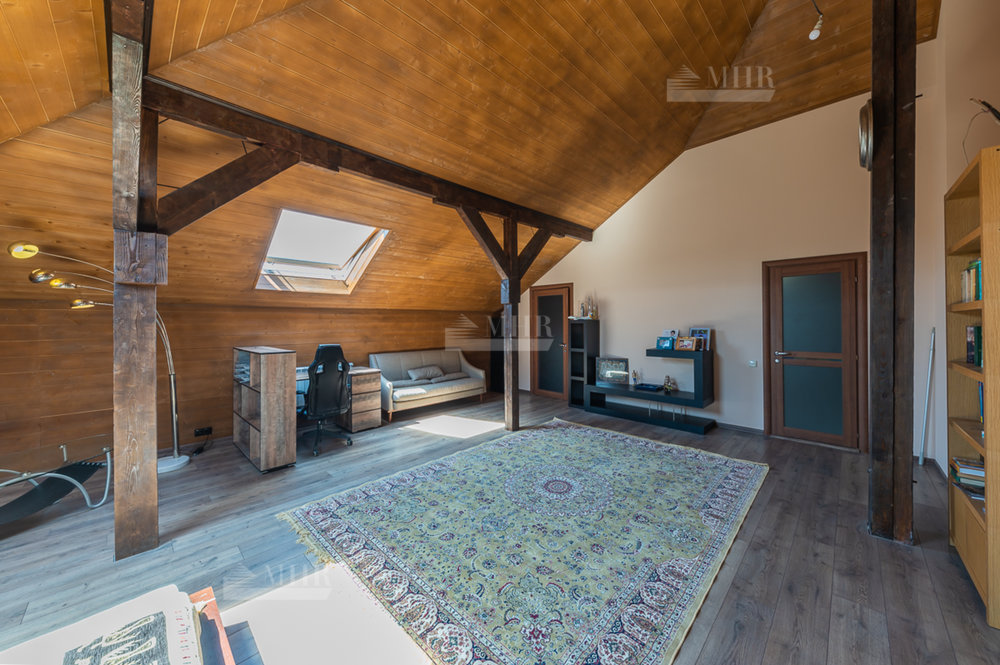 Мансарда: большая спальня с гардеробной и санузлом, кабинет, зона отдыха, кинотеатр.