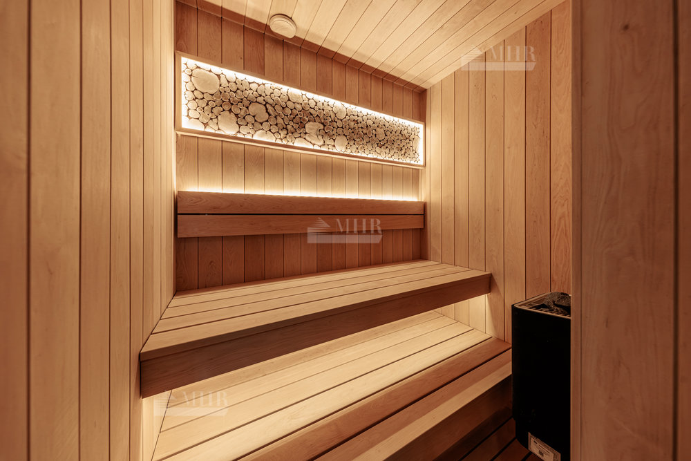 Планировка: холл, кухня-гостиная с выходом на террасу,  4 спальни, 3 с/у, сауна