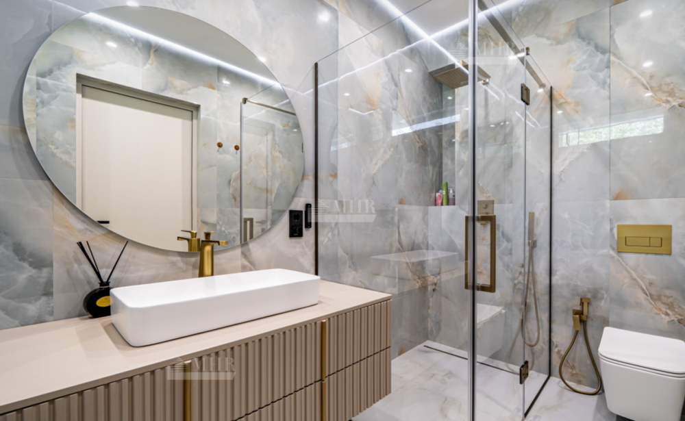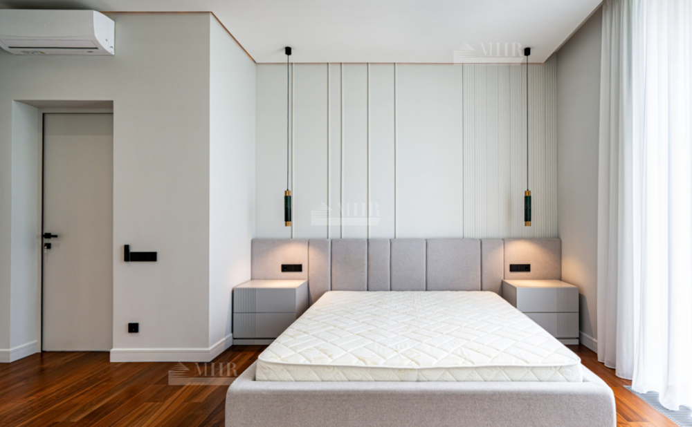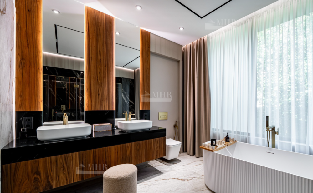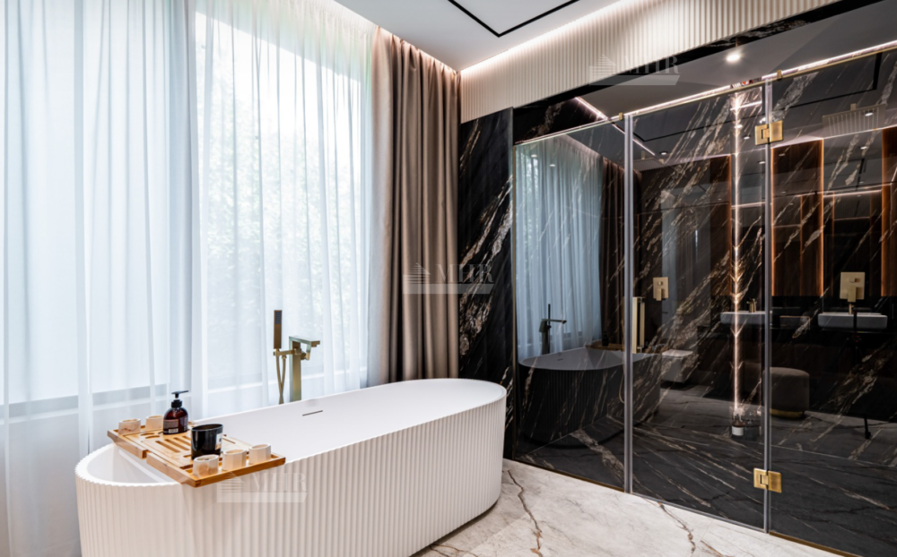 2-й этаж: мастер-спальня со своими санузлом и гардеробной комнатой, 3 спальни со своими санузлами и гардеробными.
