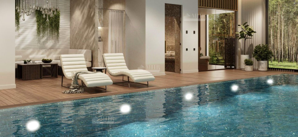 Новый дом в старой части Николино. Лесной участок правильной формы. Уже сформированный ландшафтный дизайн. Красивая и сдержанная входная зона с высокими туями. Для отвода поверхностных вод вокруг всего дома выполнена дренажная система с ливневыми колодцами и погружными насосами для возможной откачки поверхностных вод (согласно изысканий грунтовых вод нет). Гараж на три машиноместа. Бассейн 12 метров в длину с панорамным окном и прекрасным видом. Большая сауна также с панорамным окном. Хаммам. Во всем доме большие современные панорамные окна из дерева без горизонтальных перемычек.