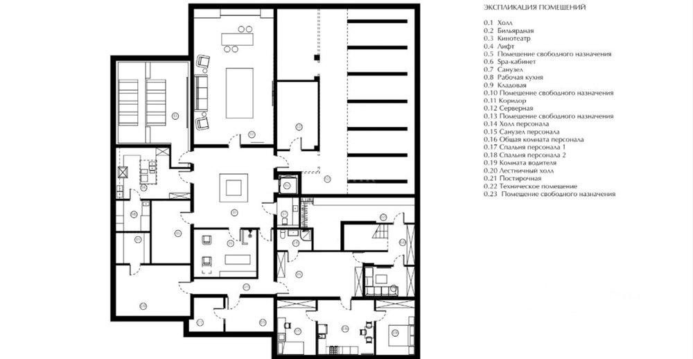 Весь фасад выполнен полностью из натуральных материалов. Полноценный цокольный этаж с потолками выше 3 метров. В цокольном этаже предусмотрена отдельная со своим входом зона для персонала. Кухня рабочая (помимо кухни хозяйской на 1 этаже) также расположена в цоколе с возможностью на отдельном лифте поднимать продукты наверх. Для полного удобства проектом предусмотрен просторный лифт на три этажа. На первом этаже он находится в центре холла. В каждой комнате есть своя гардеробная и санузел. В мастер-спальне две гардеробные и два санузла. Современное инженерно-техническое оборудование лучших мировых производителей, исключая китайских.