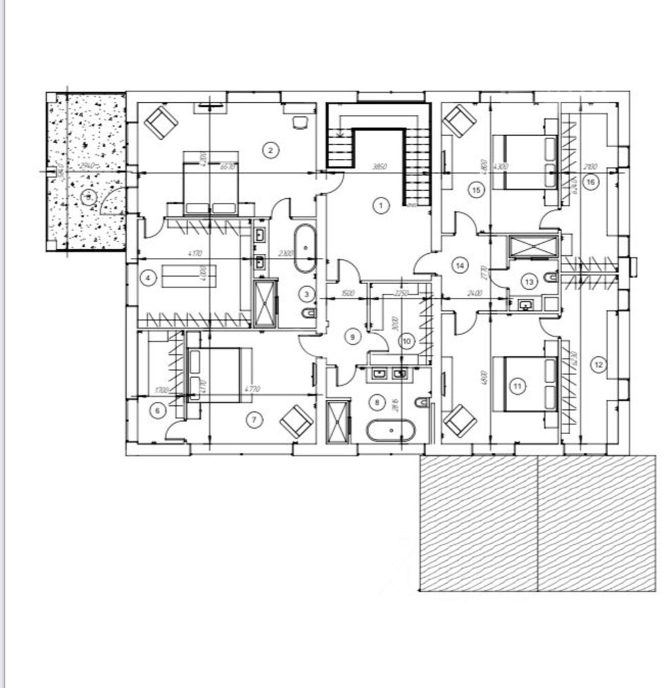 2й этаж: четыре спальни, каждая со своей гардеробной и ванной комнатой, мастер-блок с балконом.