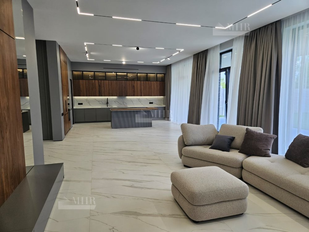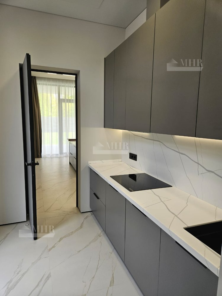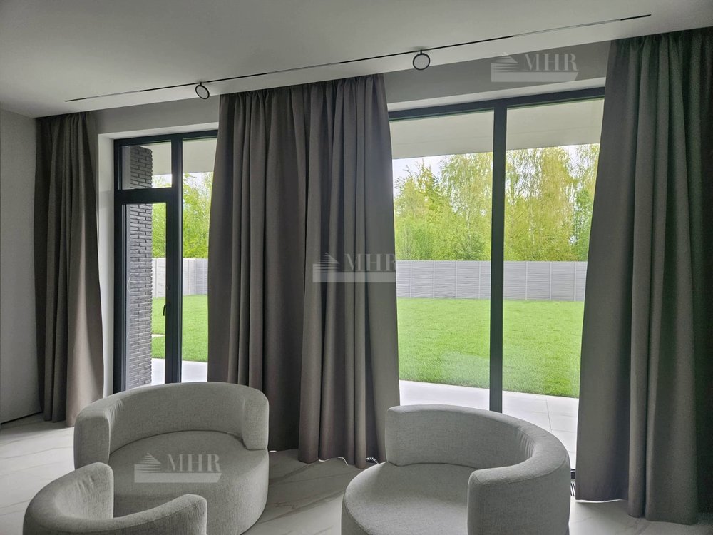 1 этаж: современная кухня-гостиная, идеально подходящая для семейных встреч и приёмов гостей, уютная спальня с собственным санузлом и гардеробной, прихожая, просторная гардеробная, котельная, гараж на 2 машино-места;