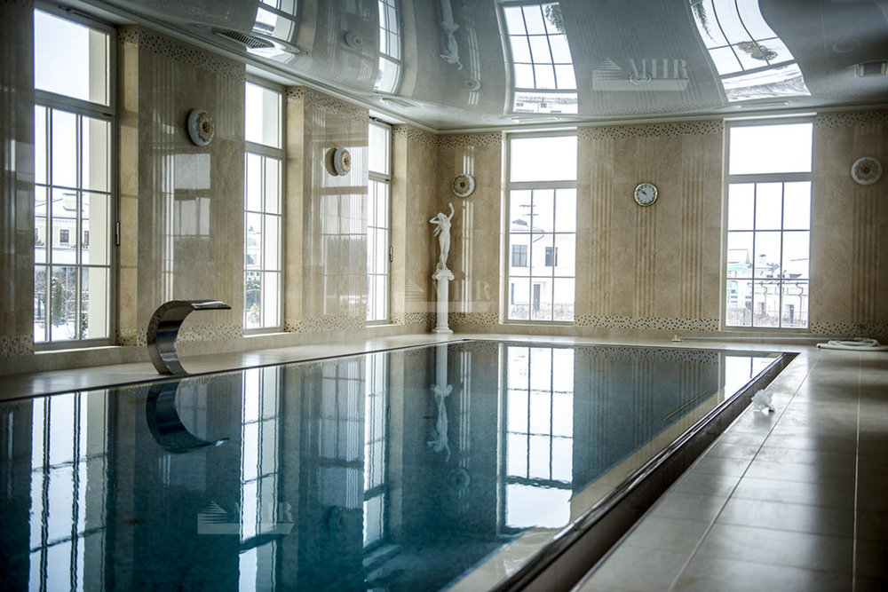 1 этаж: холл, гостиная, столовая, кухня, 3 спальни с с/у, гараж на 2 машины, бассейн, сауна, хамам, душевые, с/у;
