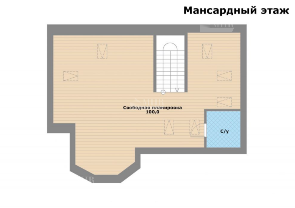 3 этаж: мансарда свободной планировки 100кв.м.