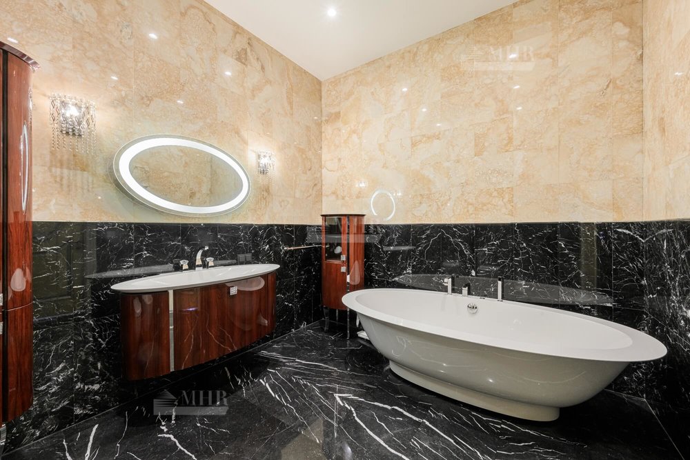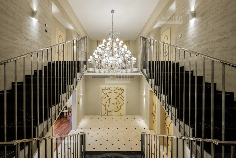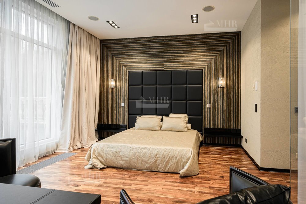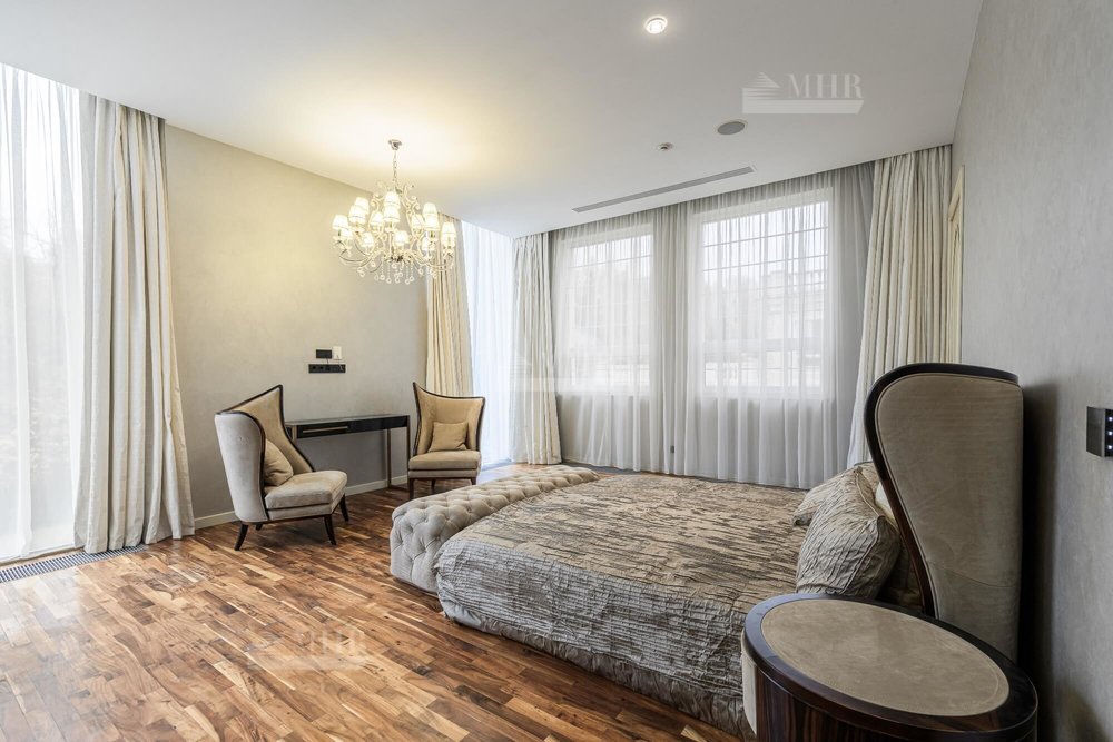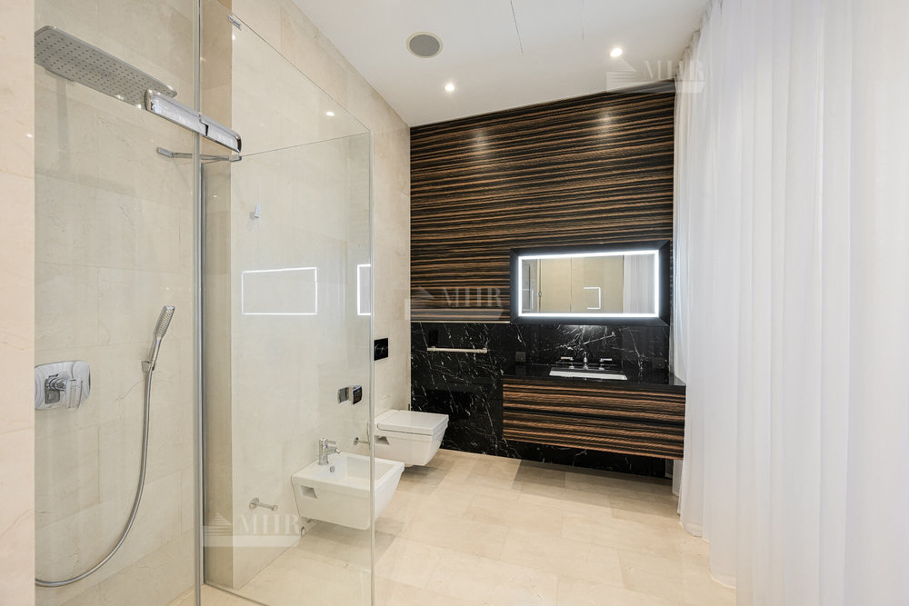 2-й этаж: мастер-спальня с ванной комнатой и гардеробной с выходом на балкон, мастер-спальня с выходом на террасу с ванной комнатой и гардеробной, 2 детские с ванной комнатой и гардеробной.