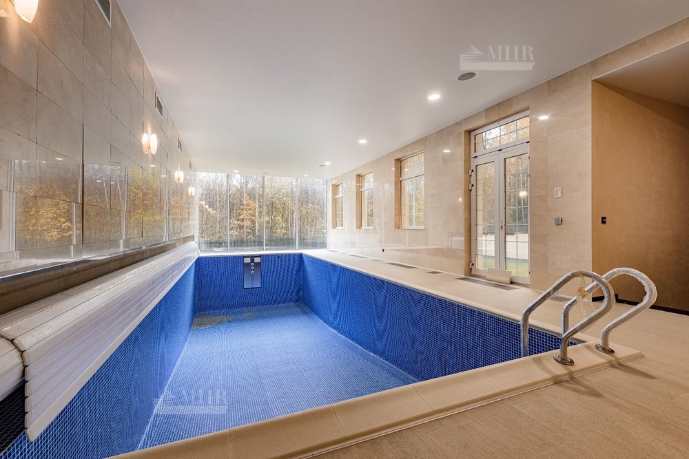 1-й этаж: прихожая, лестничный холл, просторная светлая гостиная-столовая с отдельной каминной зоной, большая функциональная кухня с островом, бассейн, сауна, с/у;