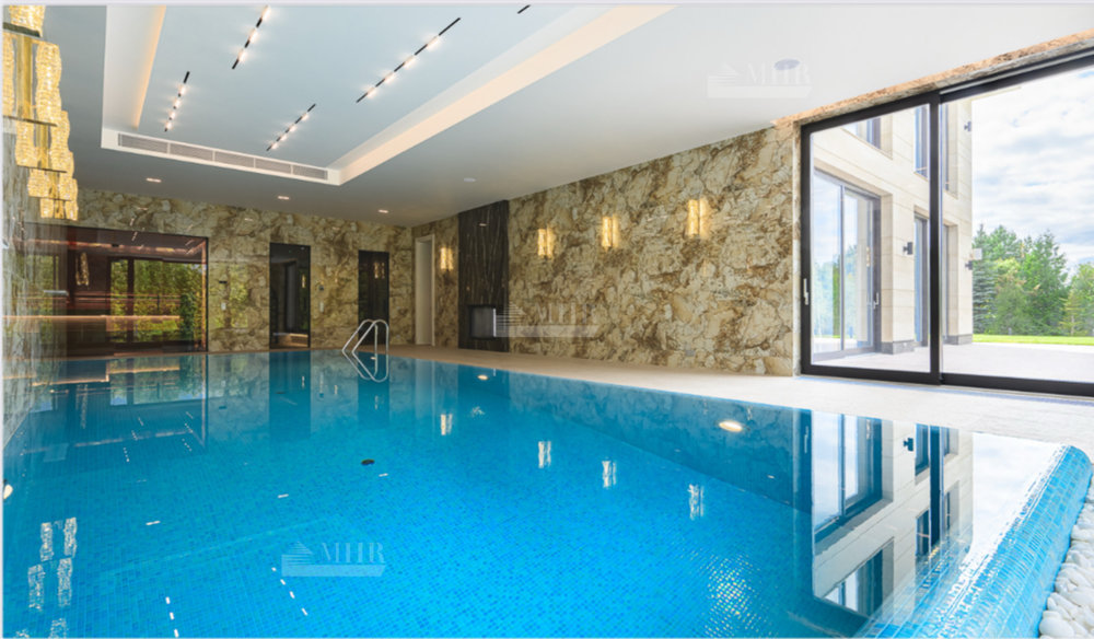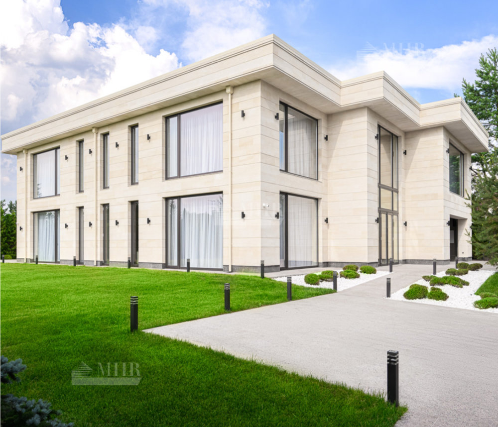 МКАД по Новорижскому шоссе. Фасад дома облицован натуральным камнем. В доме 6 спален, отделка выполнена с использованием современных высококачественных материалов,