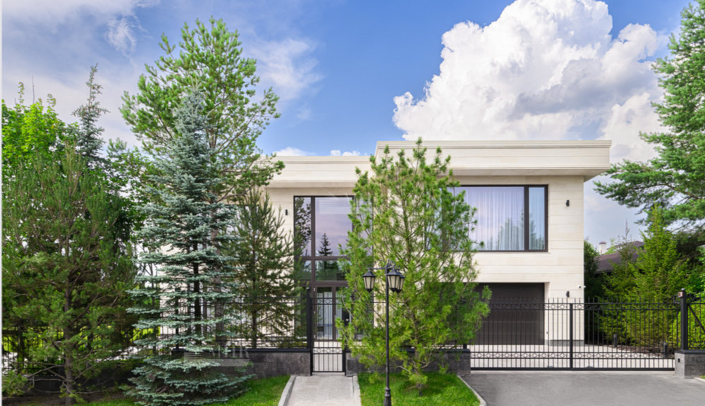 Ландшафт включает в себя эксклюзивные виды растений, автоматический полив, уличное
