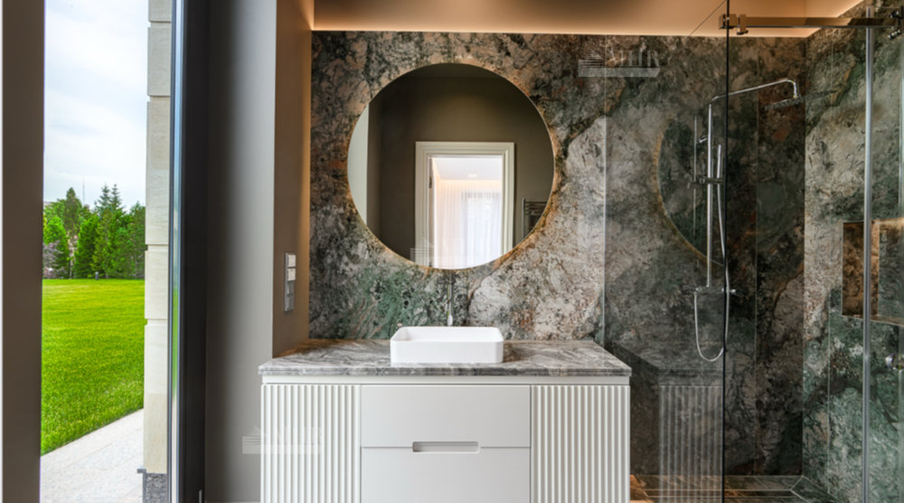 освещение, въездная группа, терраса и дорожки вымощены из гранита с подогревом. На участке располагается отдельно стоящий гостевой дом с