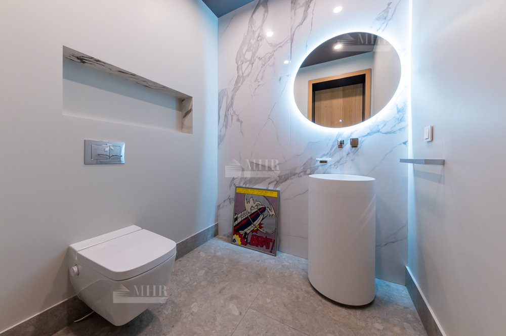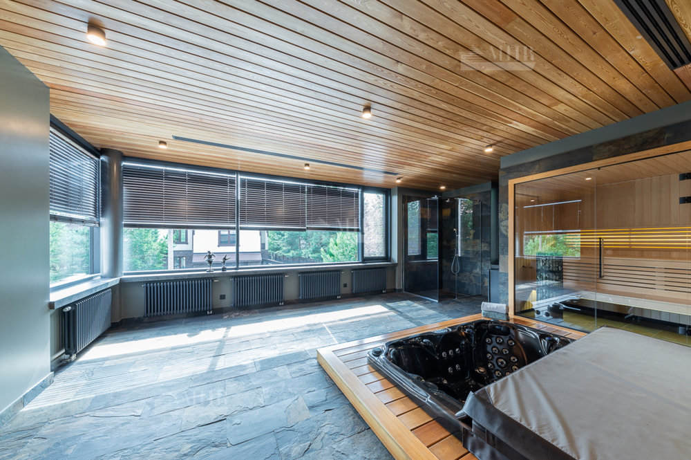 2 этаж: 3 спальни, каждая - с с/у и гардеробной, кабинет/спальня, SPA-зона с сауной, джакузи и душевой.