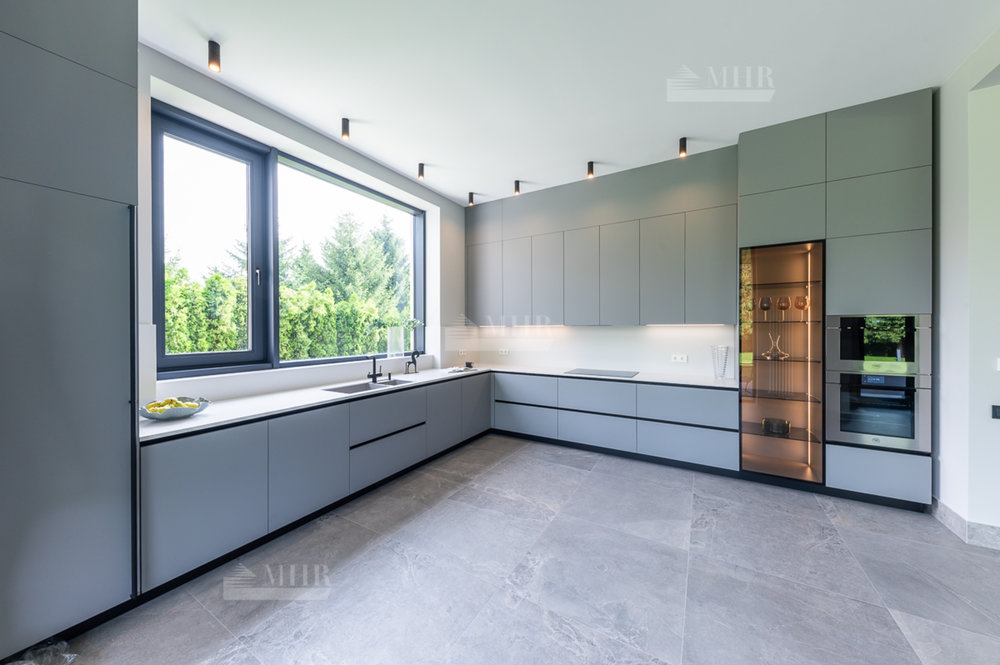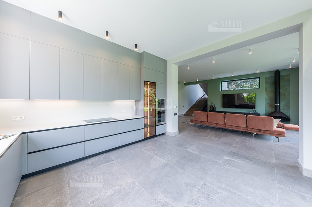 1 этаж: холл, гостиная с камином, кухня-столовая с выходом на просторную террасу, гостевая спальня, гардеробная, 2 с/у, постирочная, котельная, гараж на 2 авто.