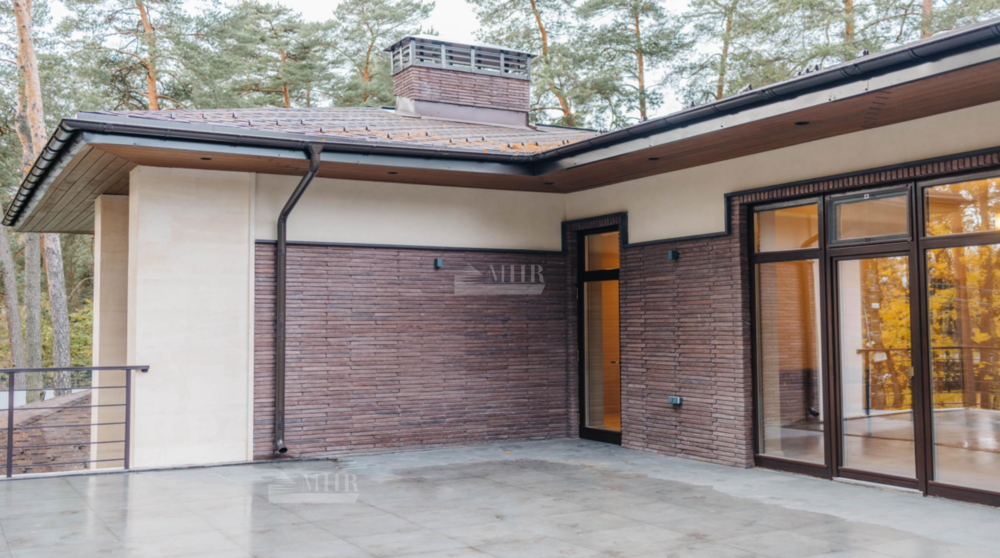 1-й этаж: прихожая, холл, гостиная со вторым светом и камином, кухня-столовая с выходом на террасу, гостевой С/У, гостевая спальня, спорт зал, СПА зона, гардеробная, постирочная, гараж на 2 автомобиля