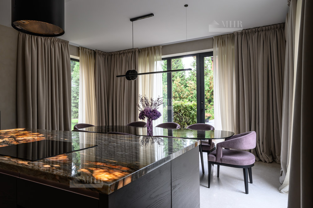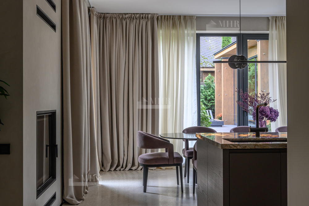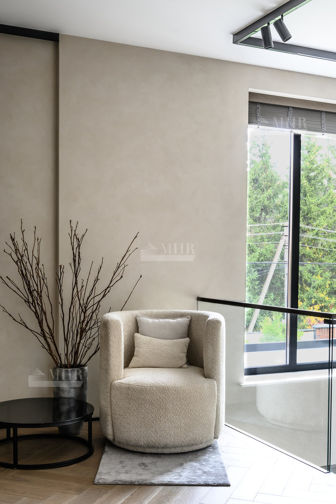 Дом построен в 2 этажа. Под ключ. Современный интерьер исполнен в спокойных, пастельных тонах и дополнен стильной мебелью.