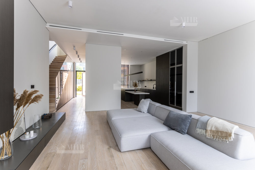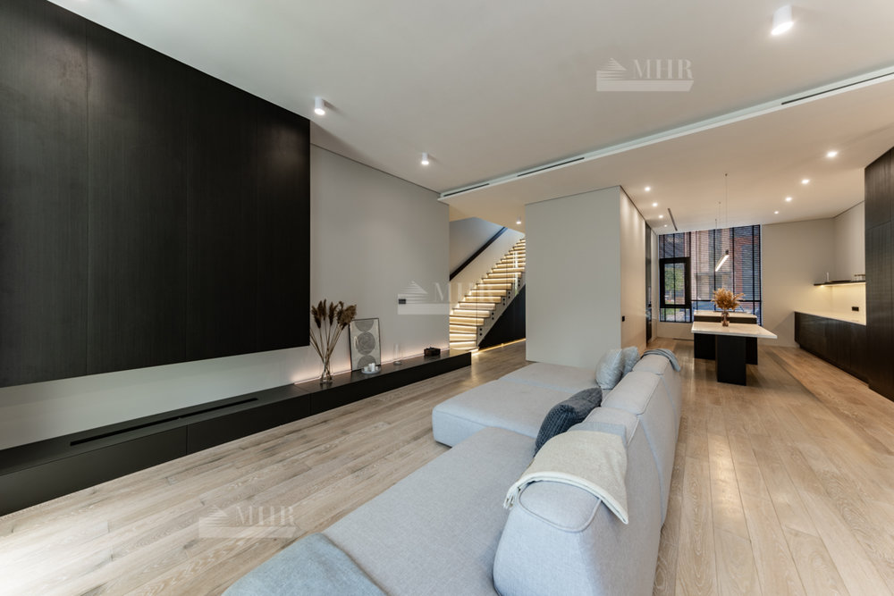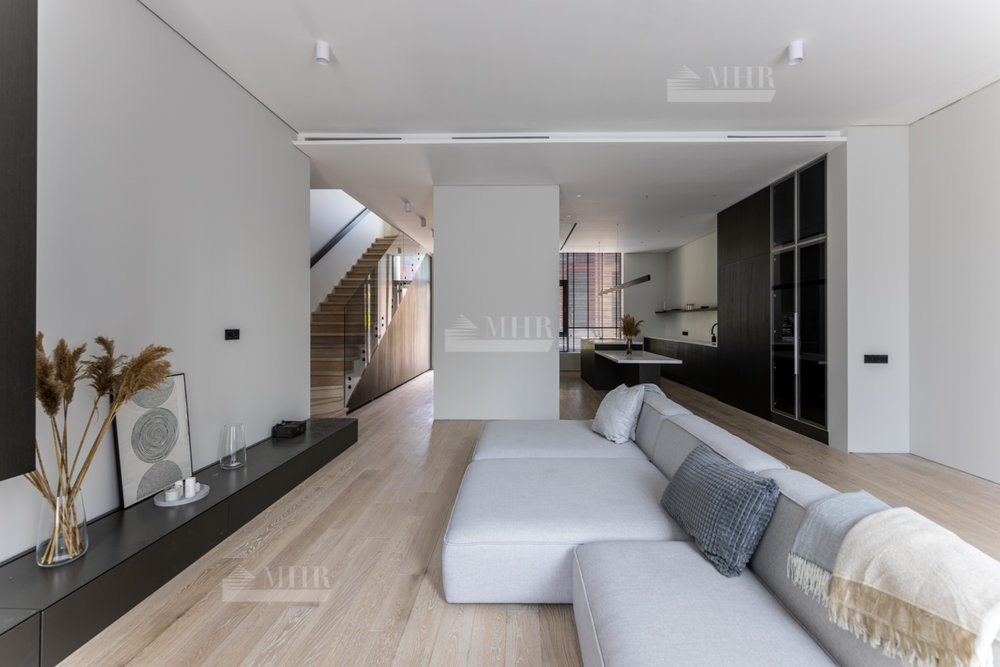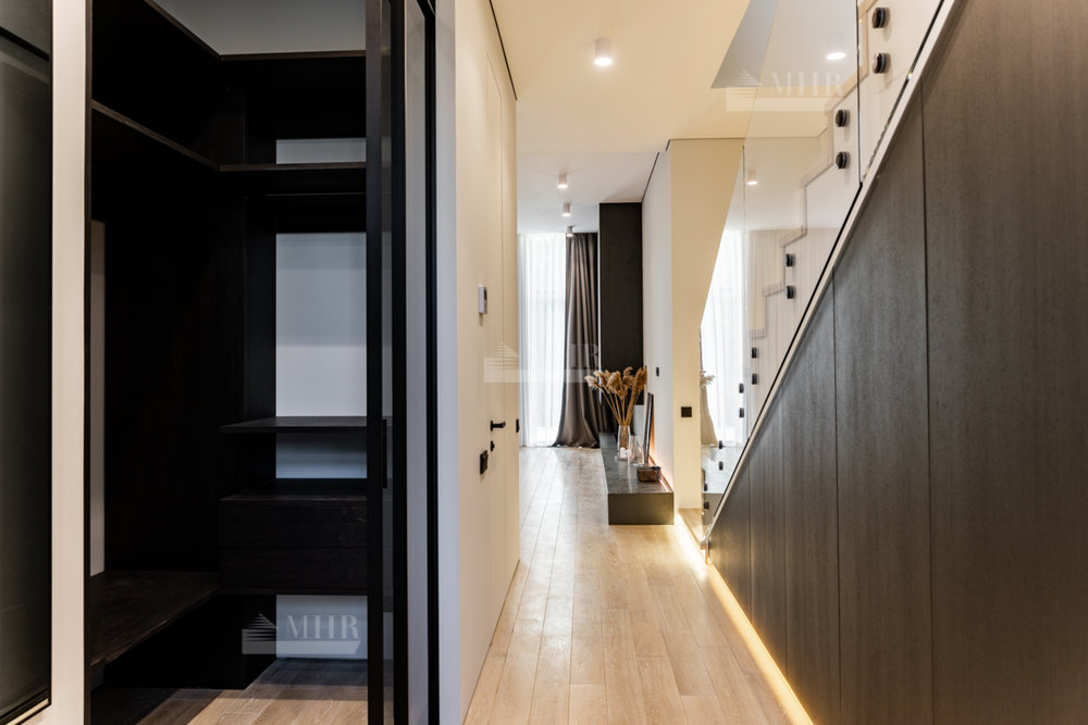 Предлагаем к продаже новый таунхаус с отделкой в стиле современного минимализма в КП "Парк Фонте". Выдержанность дизайну придает графичность черного и белого цветом, высокие потолки, панорамные окна. Функциональная планировка и продуманные места хранения позволят с комфортом разместиться семейной паре с детьми. В таунхаусе 3 уровня плюс терраса для отдыха на крыше.