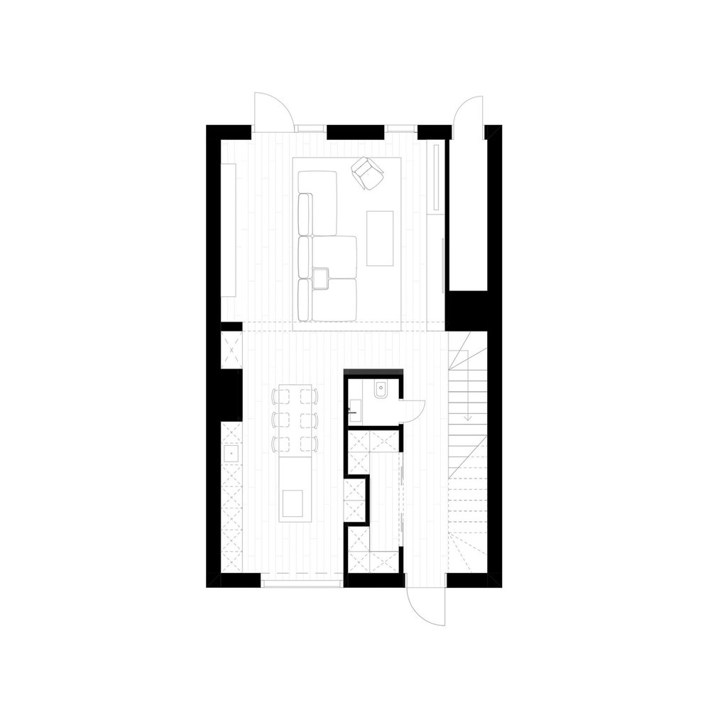 1 этаж: холл, гардеробная, санузел, кухня с островом, гостиная, терраса;