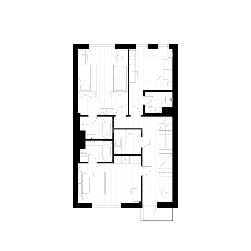 2 этаж: спальня + санузел с ванной, постирочная, спальня + санузел с ванной, спальня + санузел с душевой;
