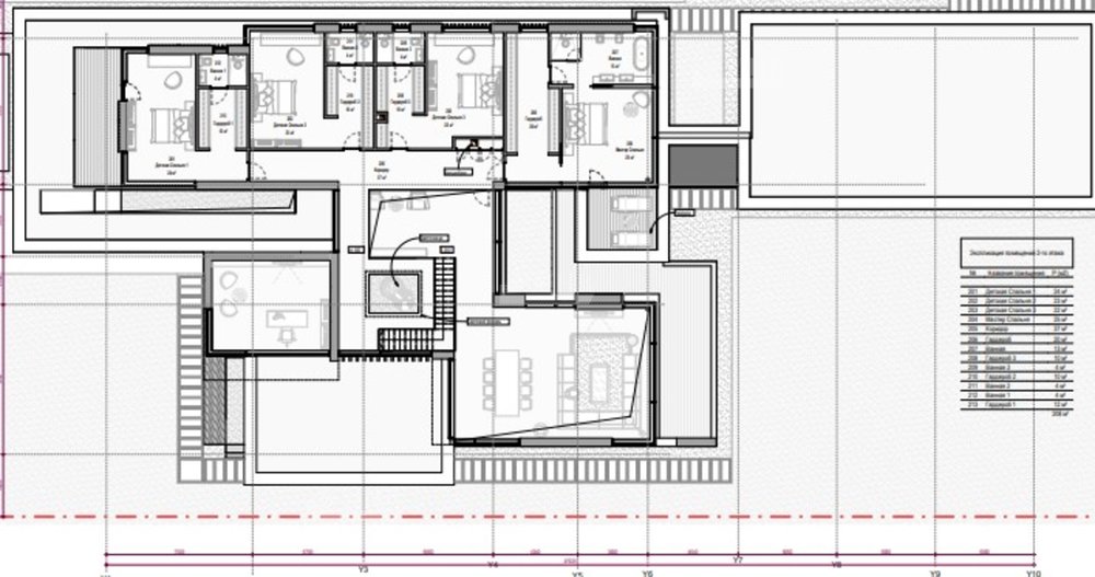 2 этаж: мастер спальня с с/у и гардеробной, 3 спальни с с/у и гардеробными