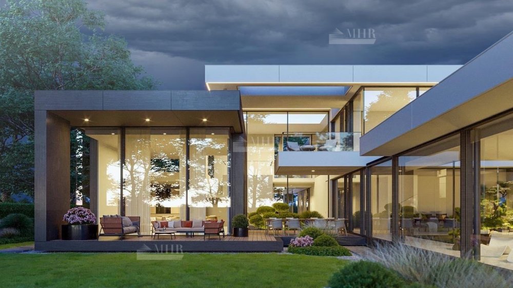 Предлагается к продаже стильный современный дом 900 кв.м. на участке 24 сотки в охраняемом поселке Сетунька.