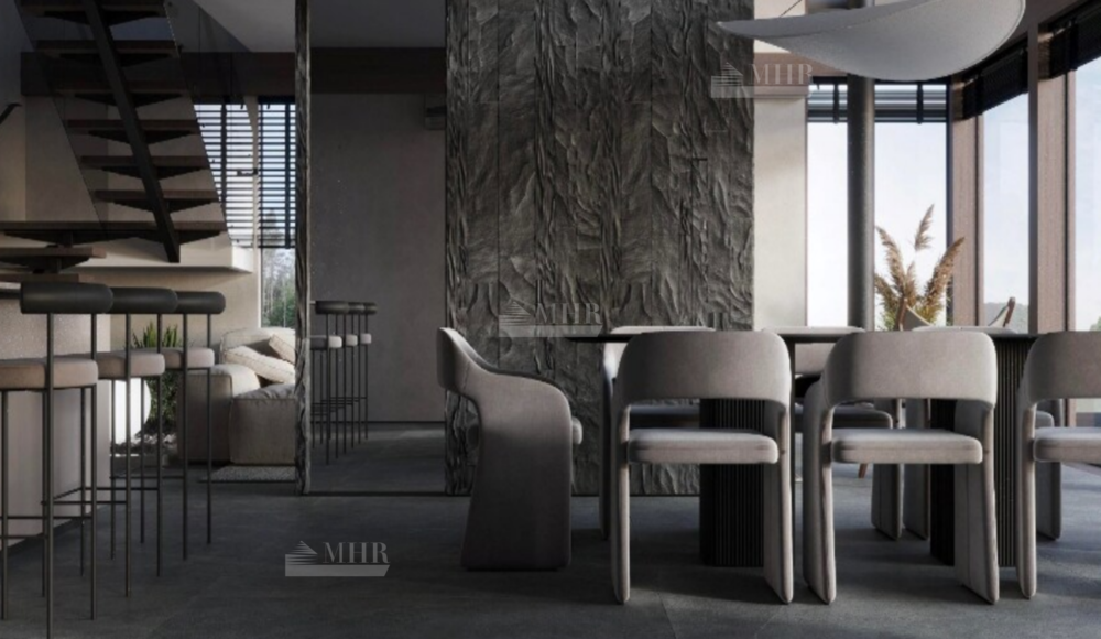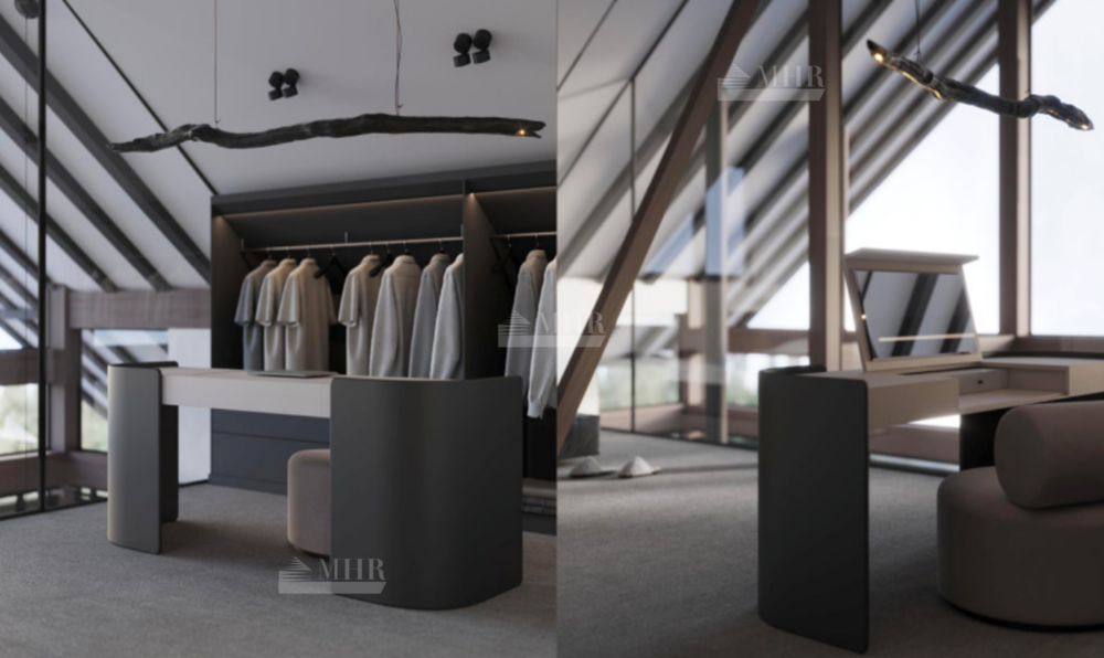 1-й этаж: просторное гостиная с камином и вторым светом, кухня + столовая, спальня с санузлом, гостевой санузел, котельная (постирочная), гардеробная;