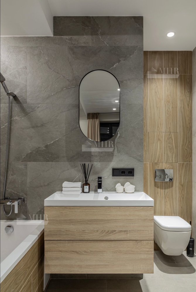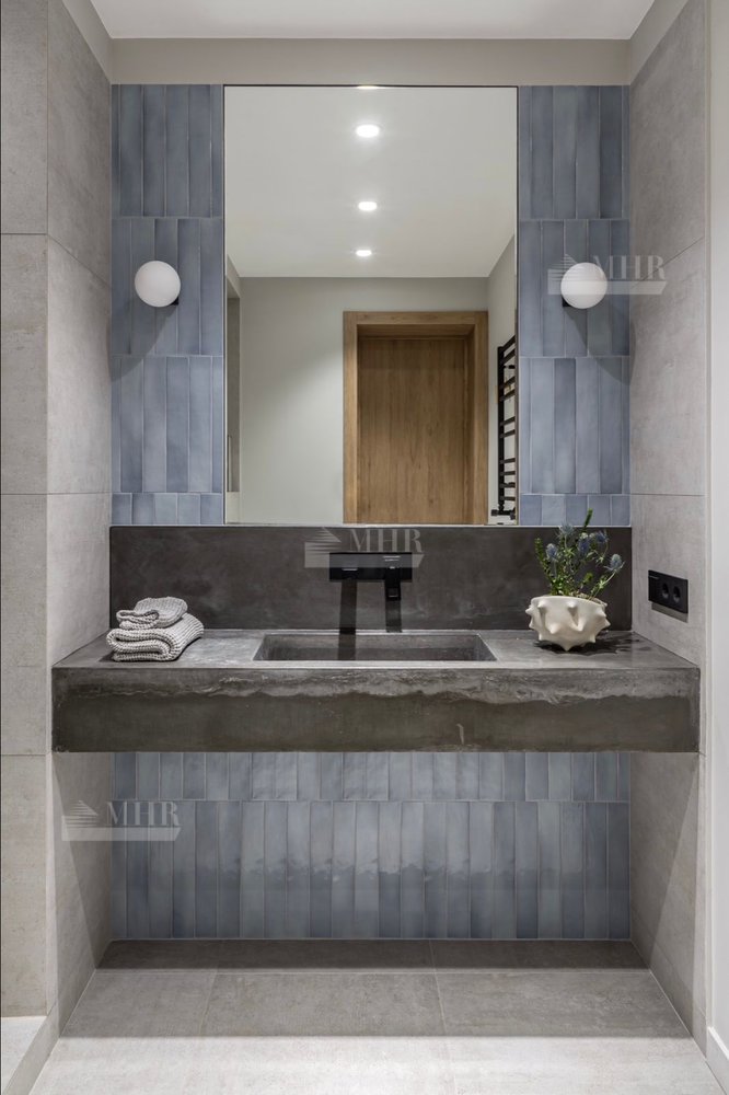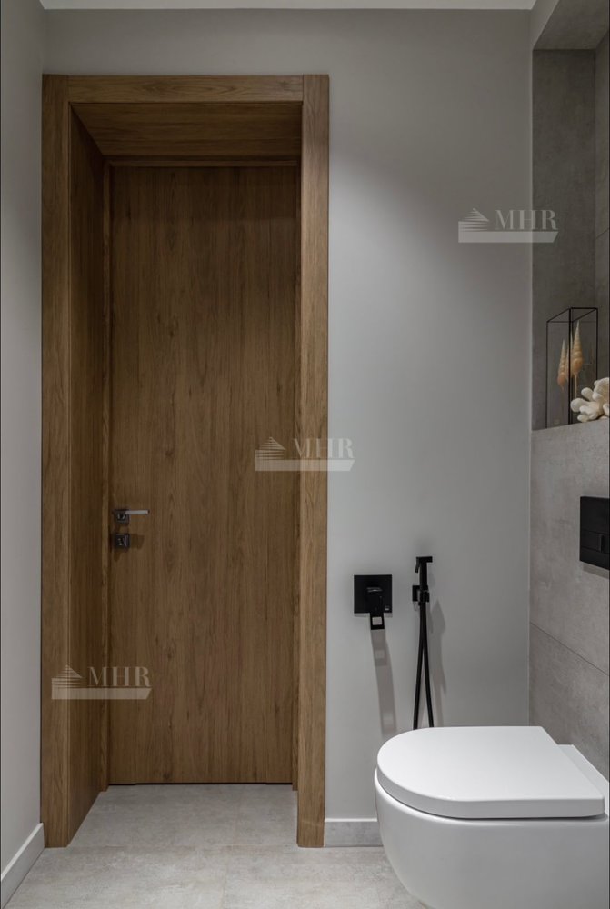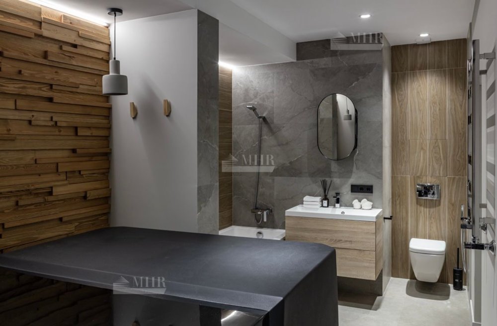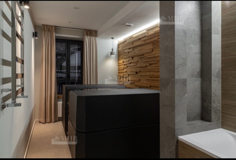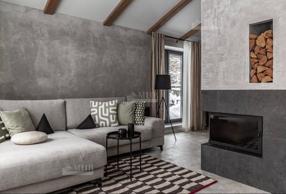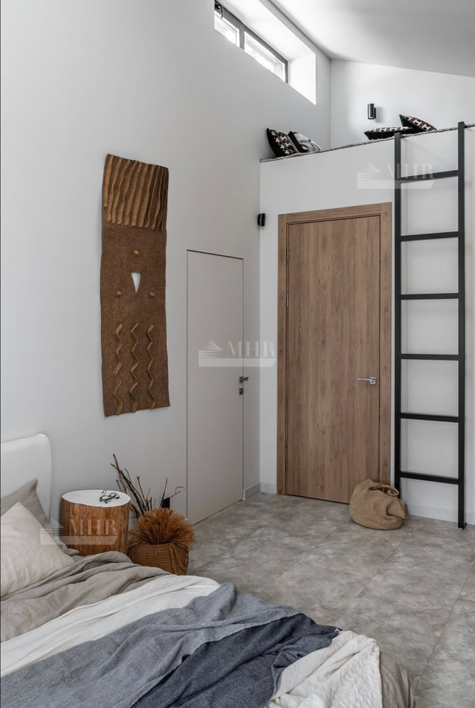 Панорамные окна в гостиной с камином и барной зоной, 2 спальни с французскими окнами и видом на сад, 2 ванные комнаты, одна из которых со SPA-ванной, гардеробная, котельная/прачечная.