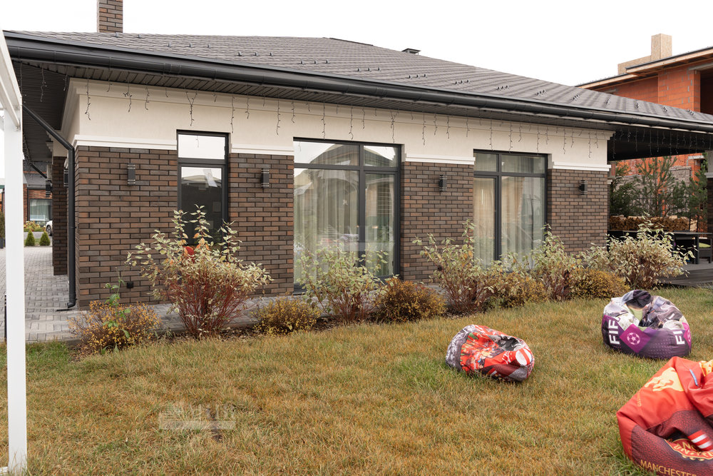 Планировка: с/у, ванная, котельная, спальня с гардероюной, 3 спальни с с/у, кухня-гостиная, терраса.