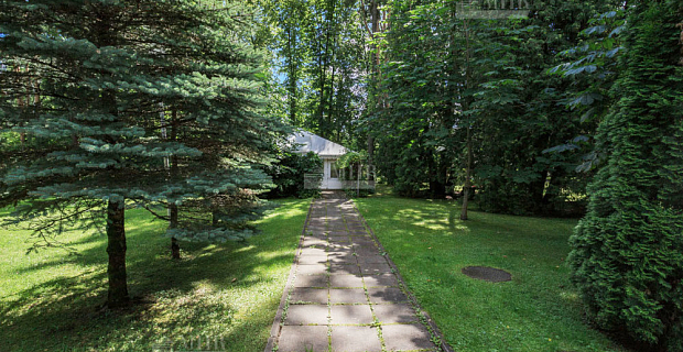 Участок с ландшафтным дизайном, также есть гараж с квартирой для персонала.