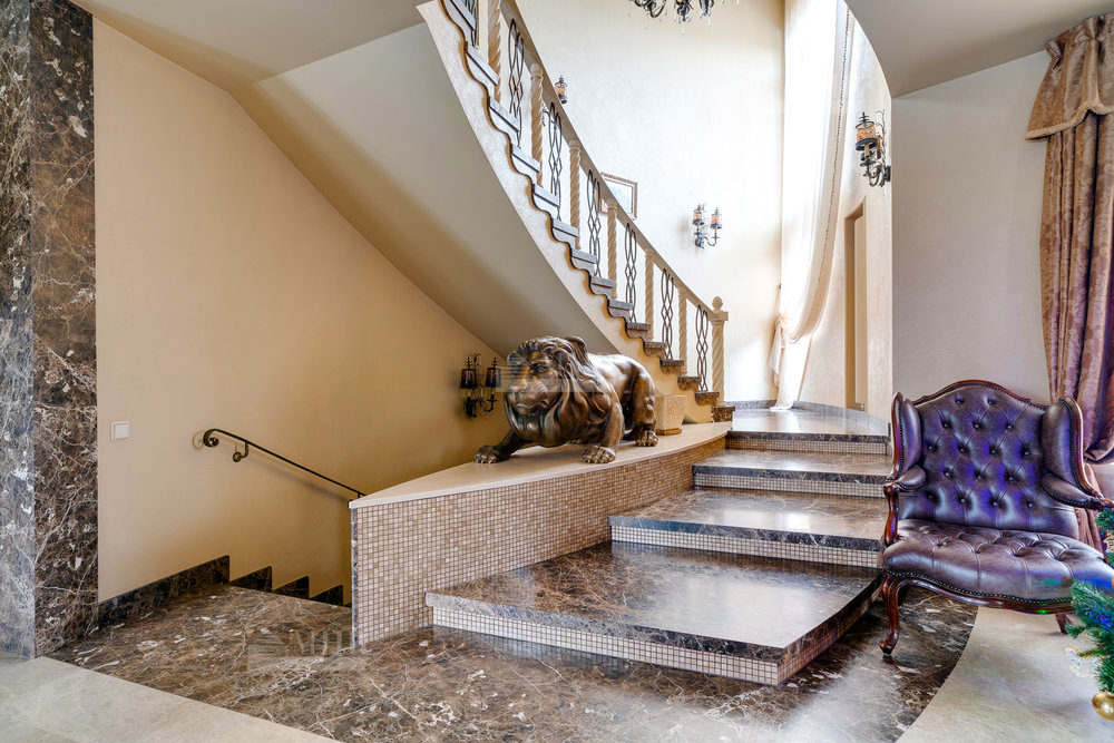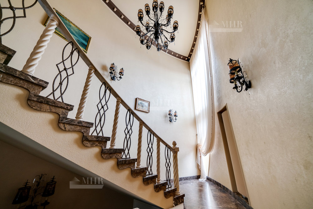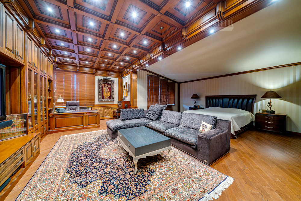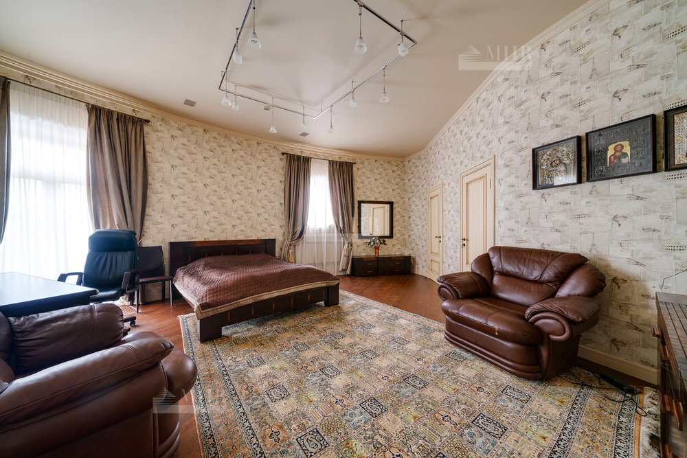 2 этаж - мастер-спальня с с/у и гардеробной, с выходом на балкон, 3 спальни со своими с/у и гардеробными, кабинет, комната персонала с с/у, балкон.