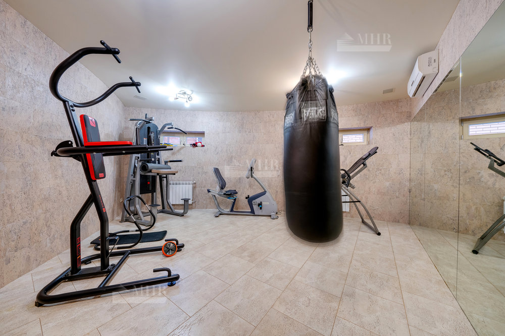 Цоколь - спальня с санузлом, гардеробная, кладовая, СПА с сауной, купель, с/у, комната отдыха, постирочная, тренажерный зал, гараж на 2 машины, бойлерная/котельная.