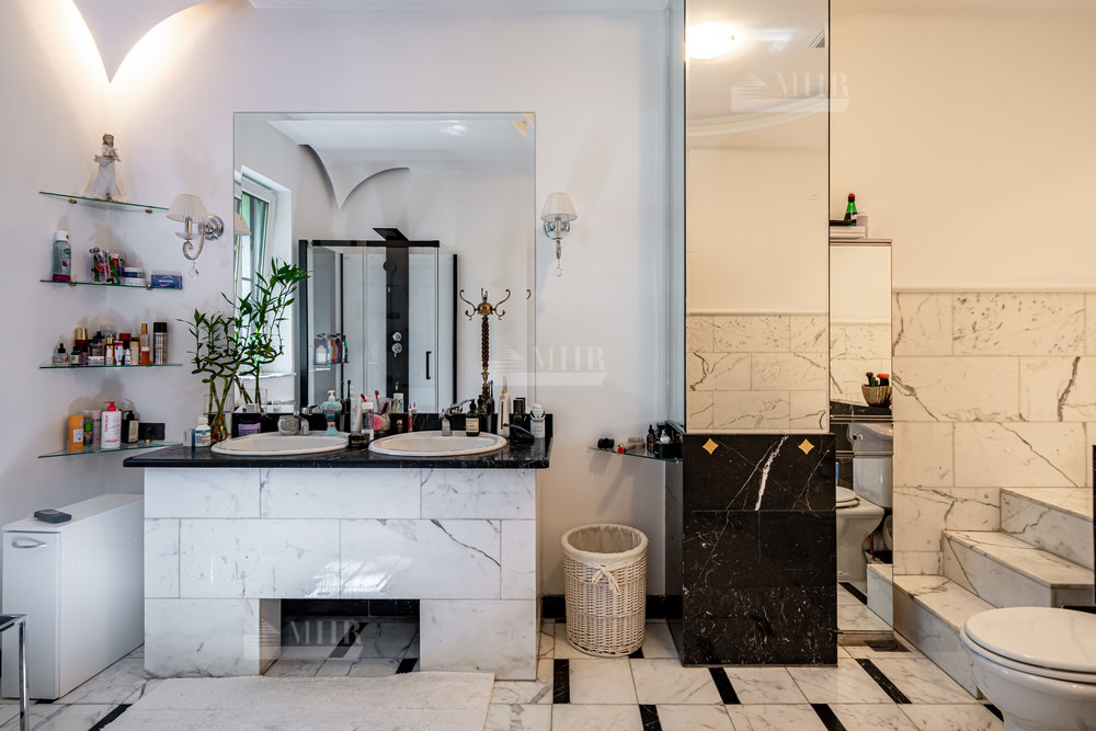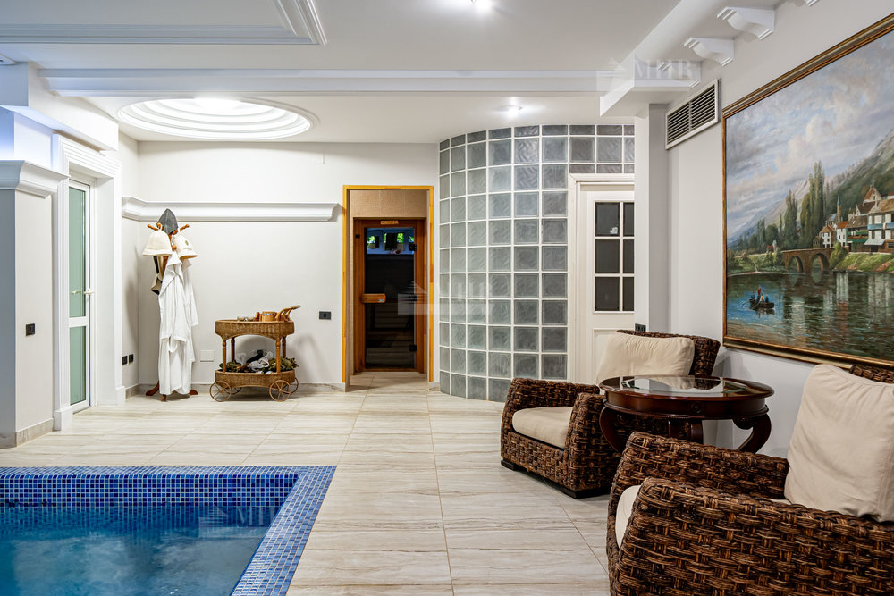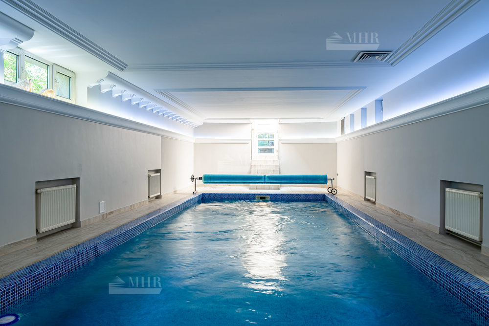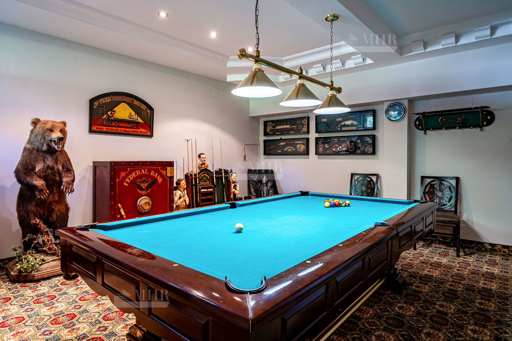 Цоколь: бассейн (размер чаши 14/4 м), сауна, бильярдная, бойлерная, домашний кинотеатр, постирочная, с/у, спортзал, чемоданная;