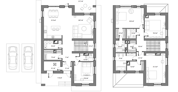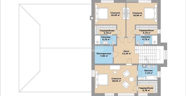 Мансарда: 2 спальни, 2 с/у, 2 гардеробные.