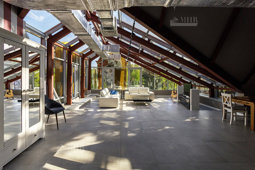 3 этаж: просторная мансардная зона свободного назначения с зоной отдыха и барной стойкой (панорамное остекление) с выходом на балкон-террасу, комната свободного назначения с куполом и панорамным остеклением, просторный санузел с душевой кабиной.