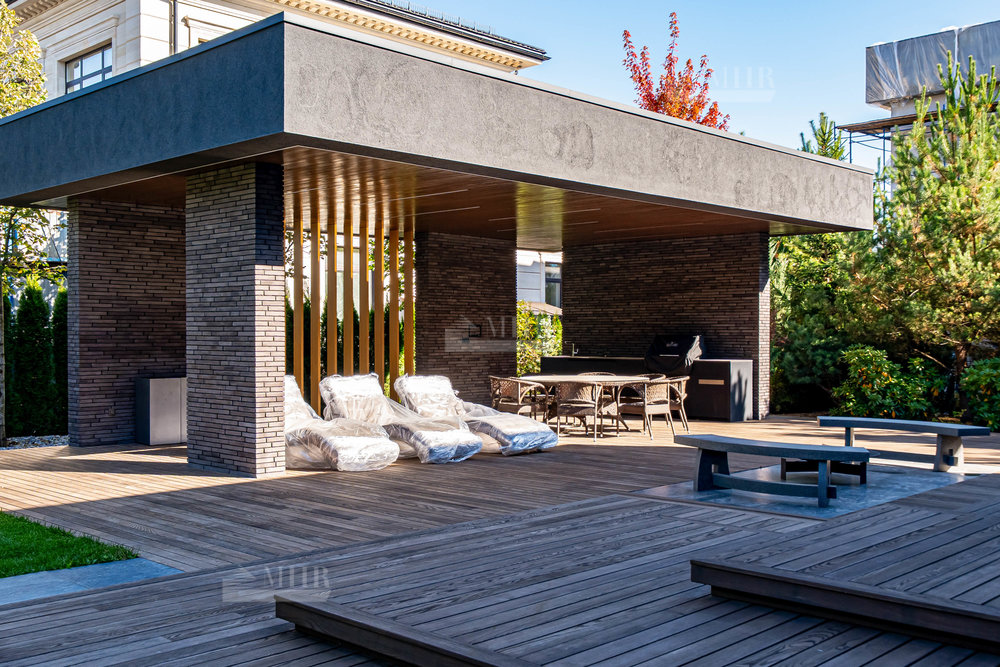 Уличная кухня оборудована техникой Bosch и грилем Napoleon, что делает летние вечера особенно приятными.