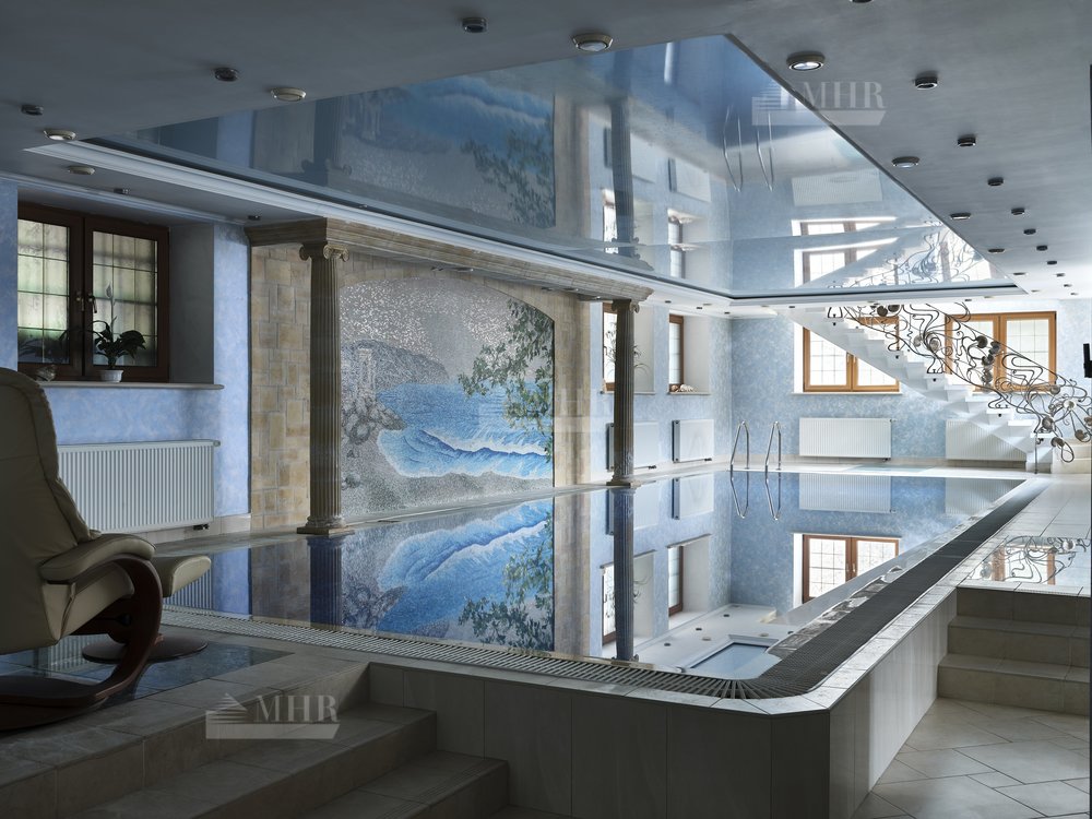 Цоколь: бассейн, тренажерный зал, постирочная, котельная, кладовая, гараж на 2 а/м, лифт.