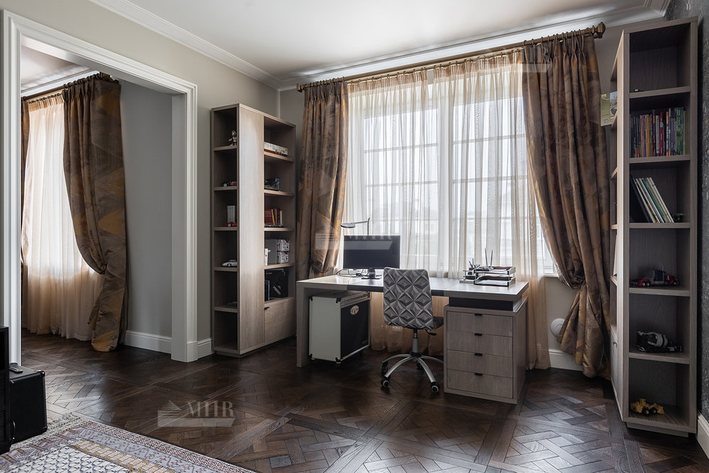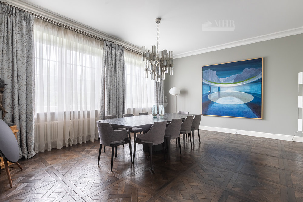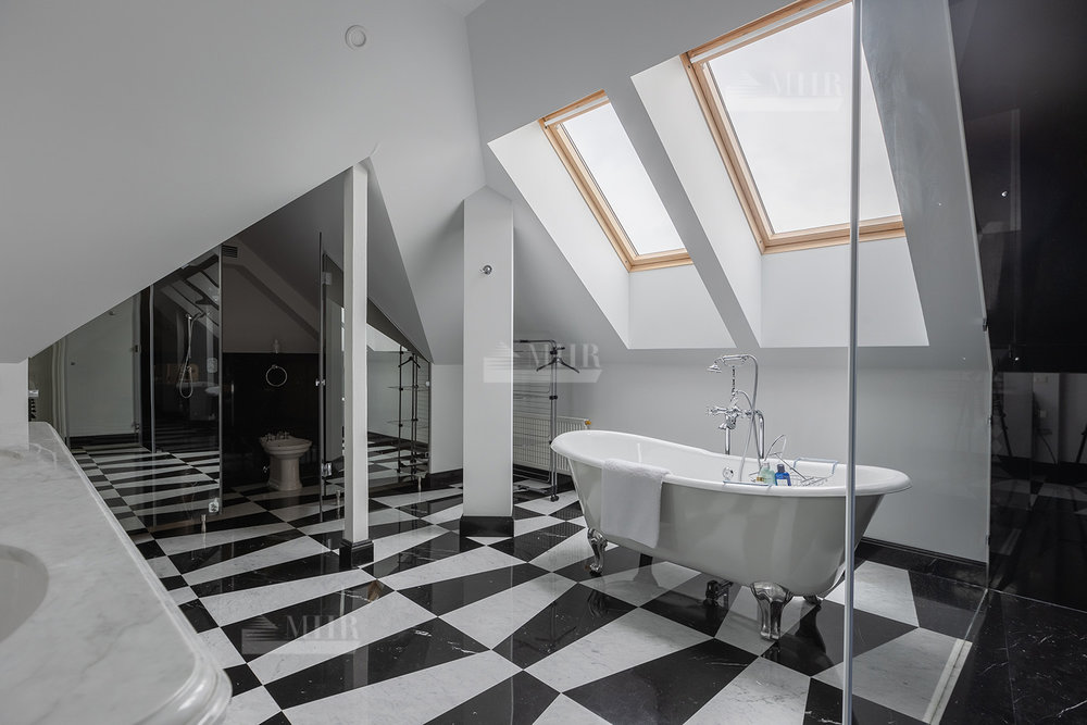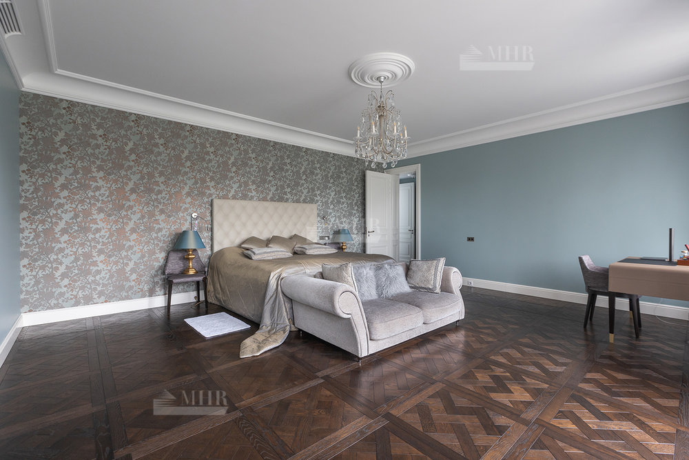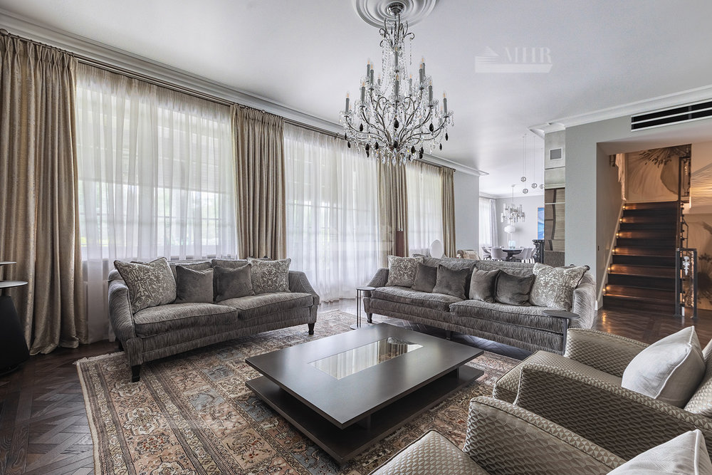 Из окон гостиной и мастер-спальни открывается потрясающий вид на парковый ландшафт участка в окружении зелени лиственных и хвойных деревьев. Имеется свой выход в парк.
