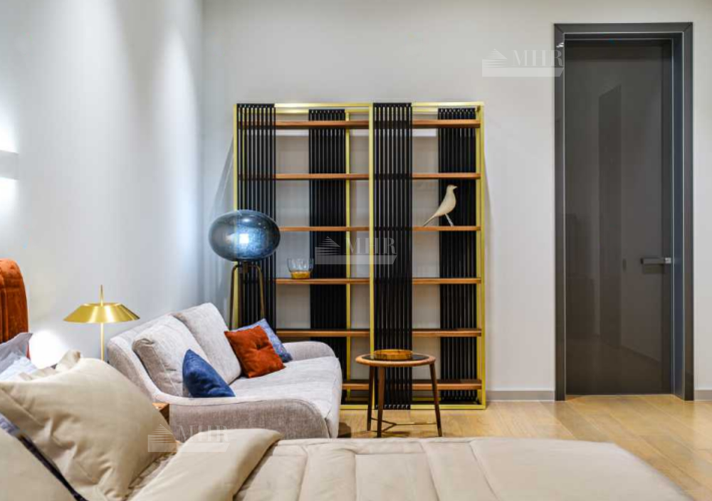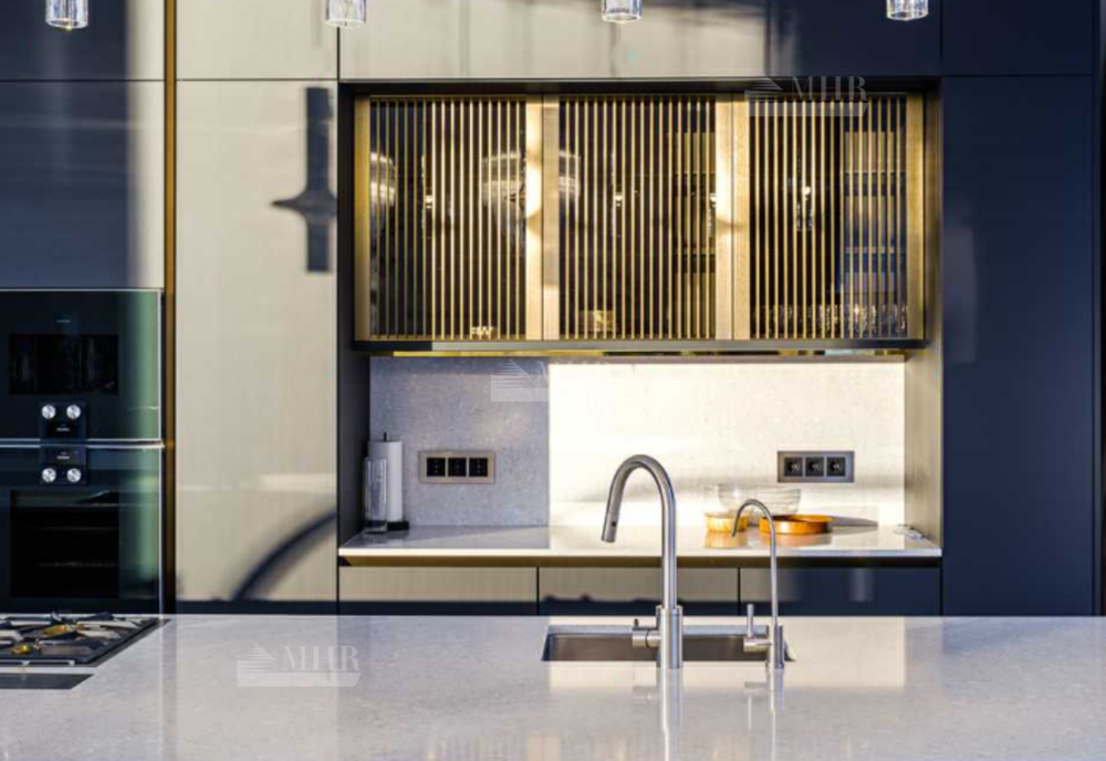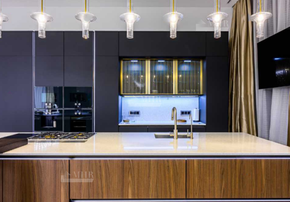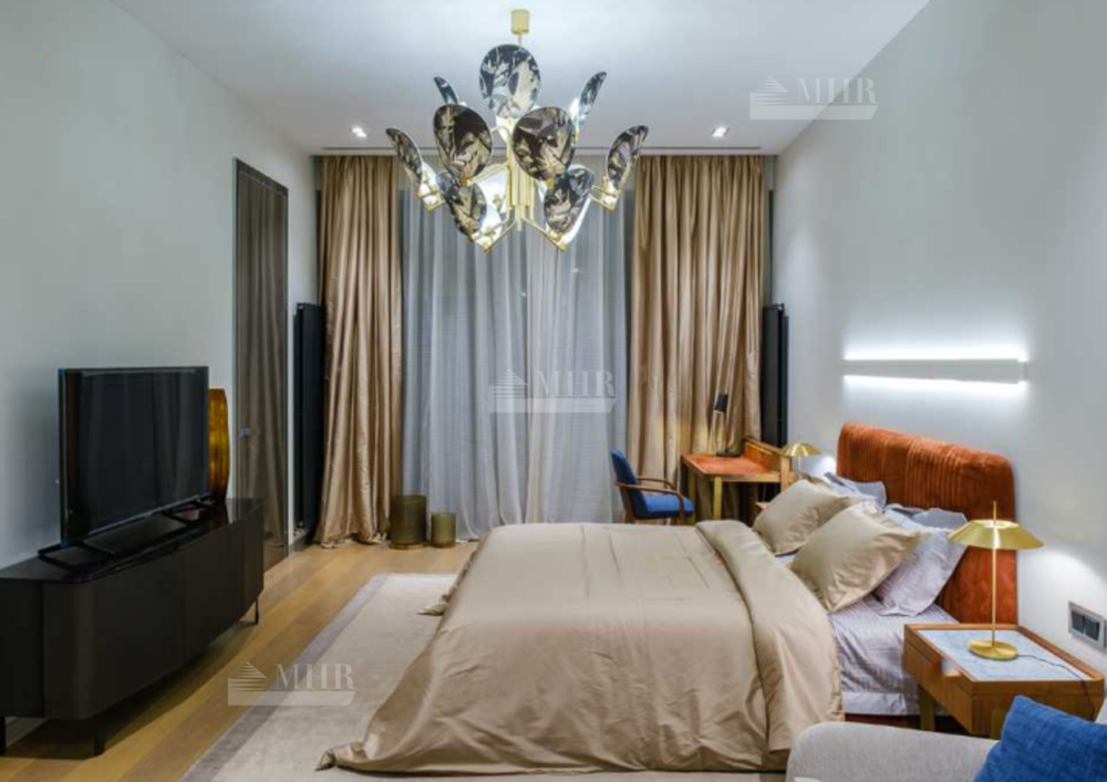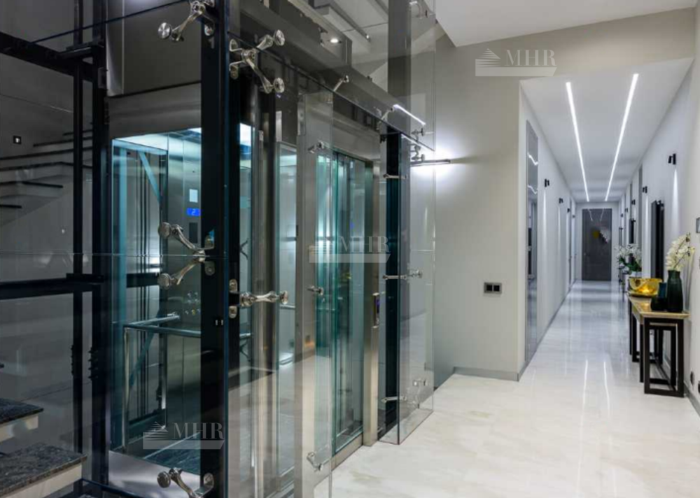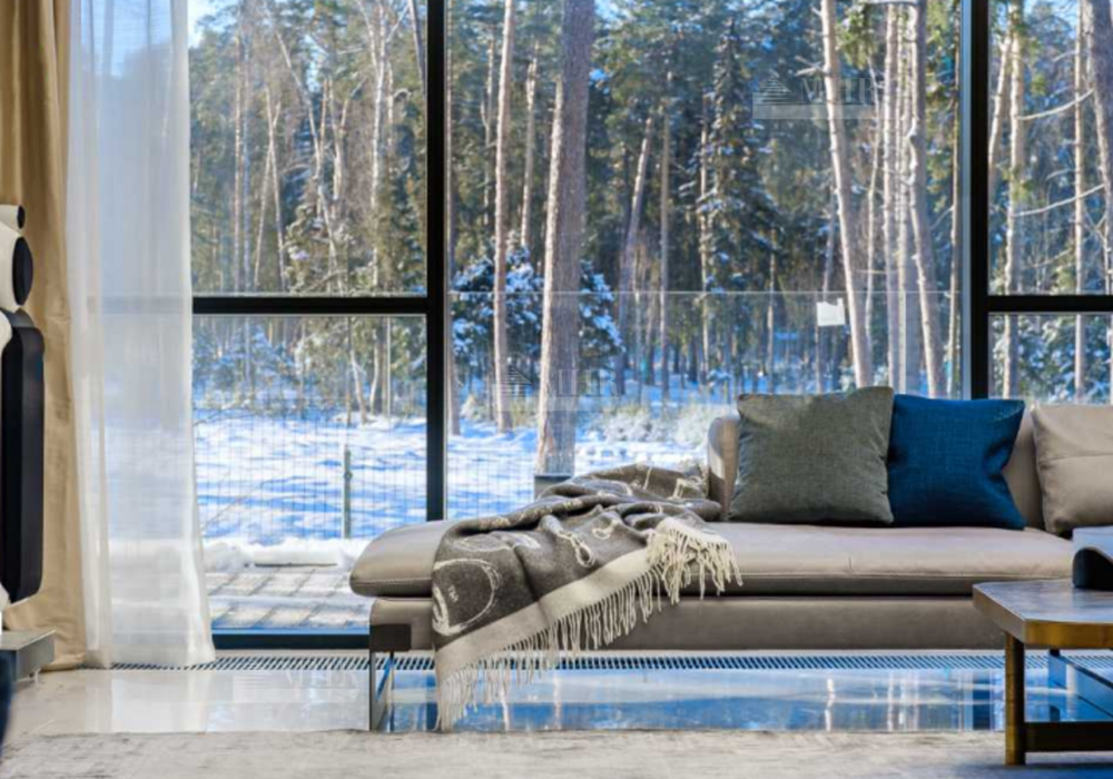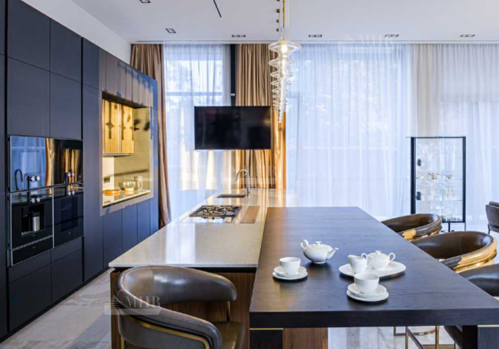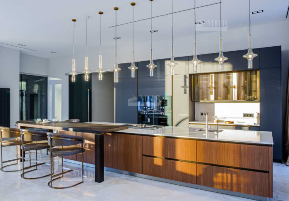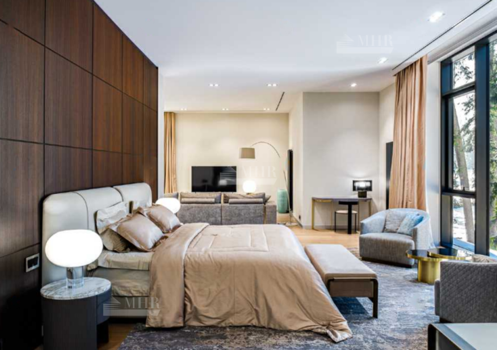 обставлен мебелью и аксессуарами ведущих мировых брендов Porada, Minotti, Baxter, Rugiano, Ulivi, Ipe cavalla, Bosa, Fiam, Tom Dixon. Санузлы оборудованы сантехникой Duravit, Fir, Cea Design, Antonio Lupi, кухня Siematic – бытовой техникой GAGGENAU. В доме установлен эффектный стеклянный лифт. В отделке использованы самые лучшие материалы: натуральный мрамор, керамогранит GRANITI FIANDRE, дубовый паркет, оконные системы SCHUCCO, двери RIMADESIO. Фасад облицован клинкером от JANINHOFF. Домовладение находится в КП «Сады Майендорф» (территория санатория Барвиха) – одном из наиболее престижных коттеджных посёлков Рублёвки. Здесь