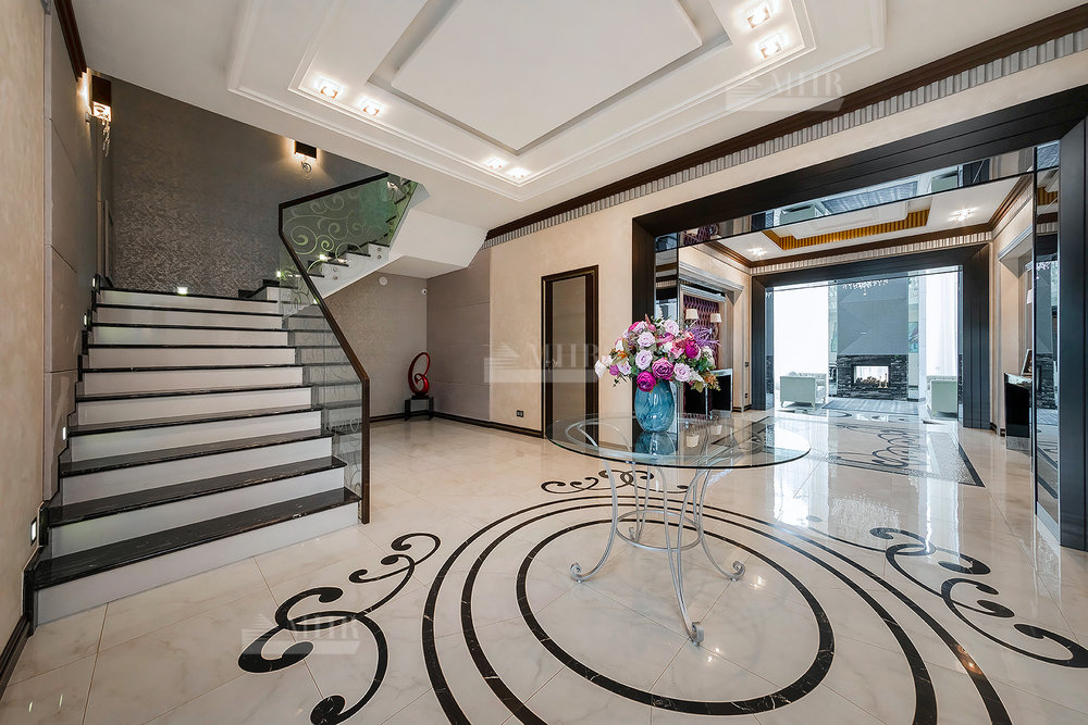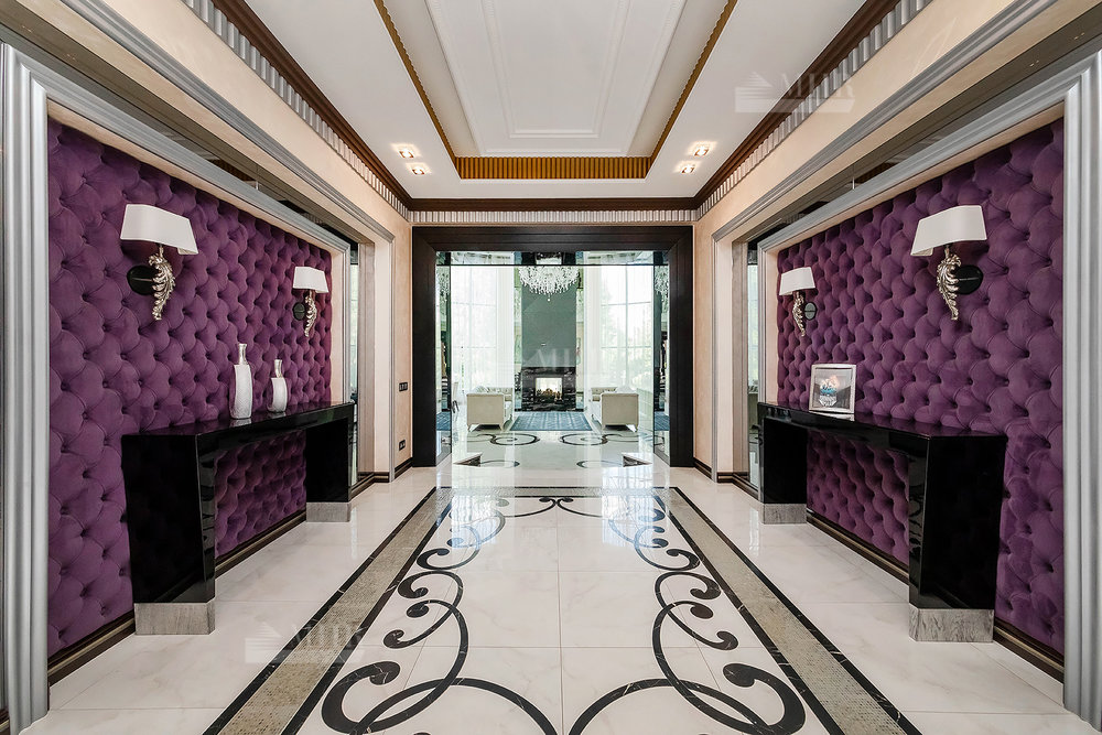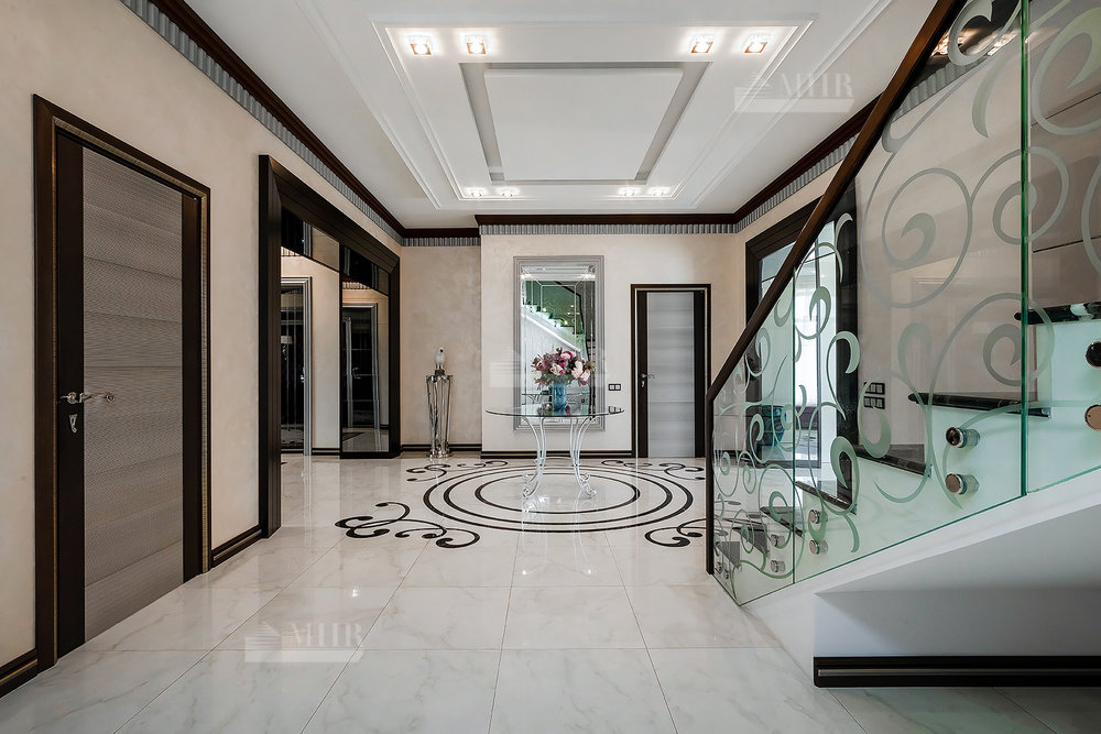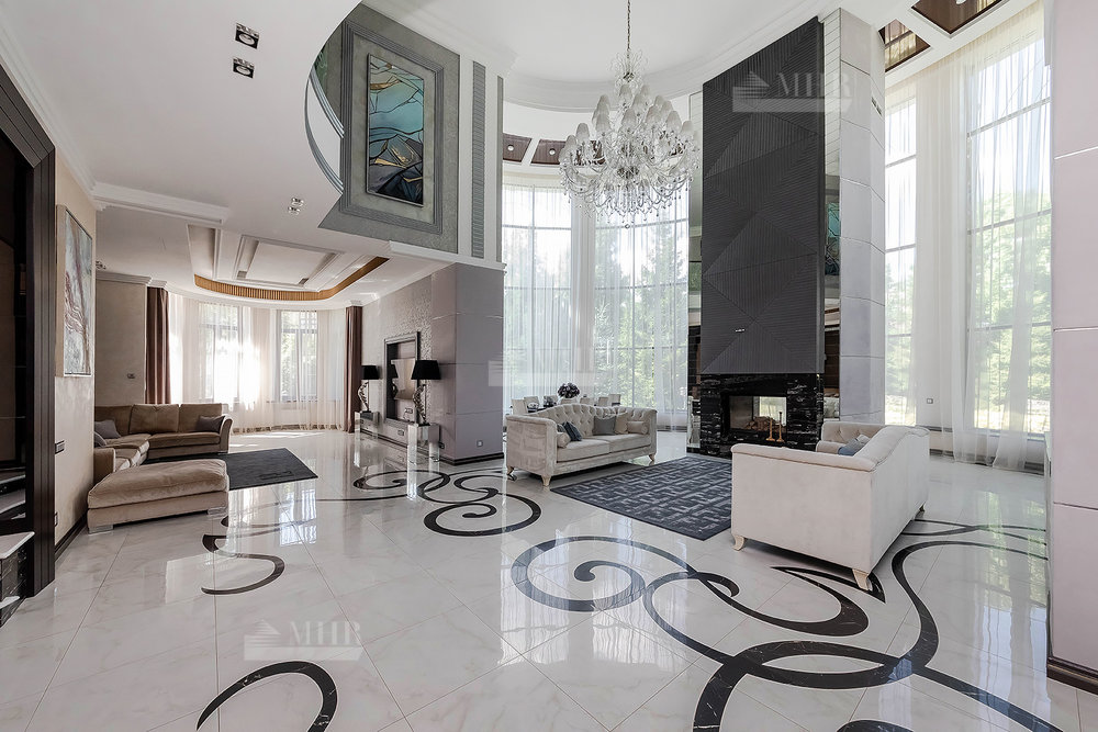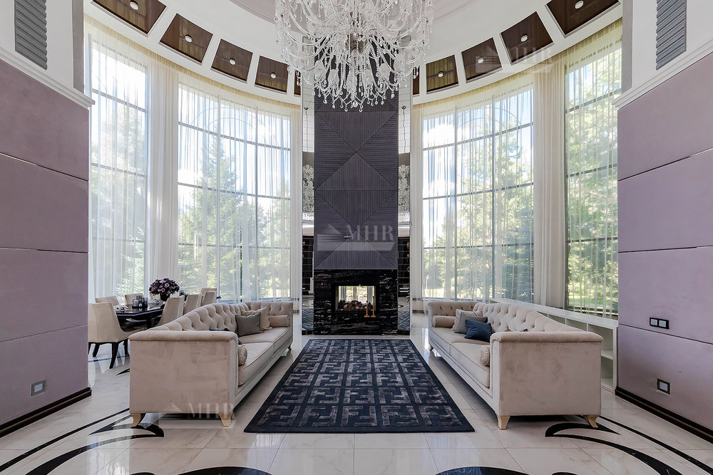 Межкомнатные двери Romagnoli, свет - Италия на заказ. Ковры FENDI, Ralph Lauren. В двухсветной гостиной установлен туннельный камин также выполненный по индивидуальному заказу.