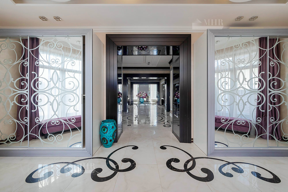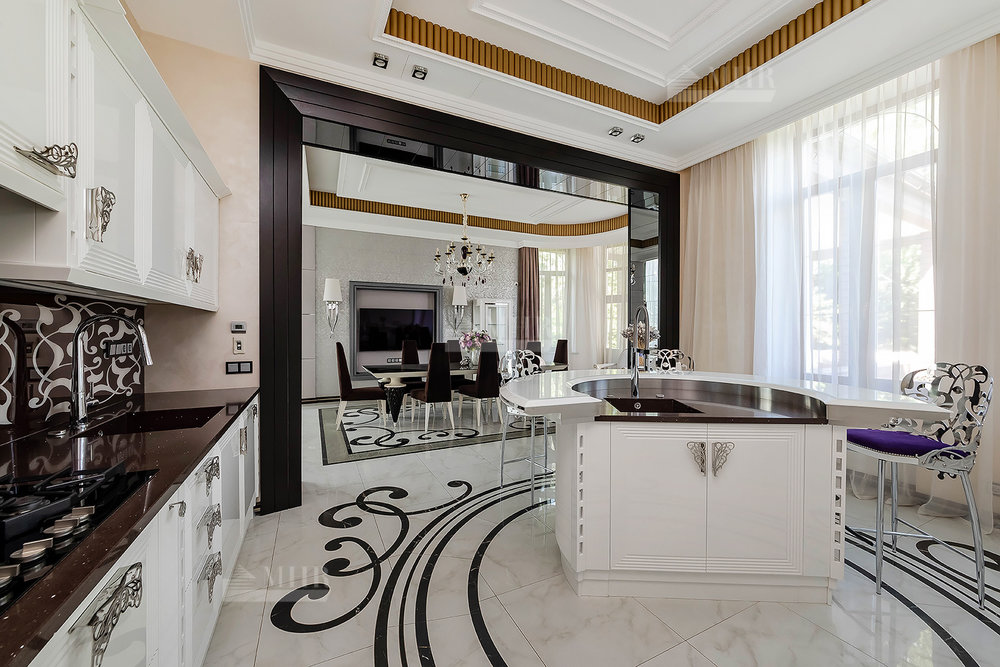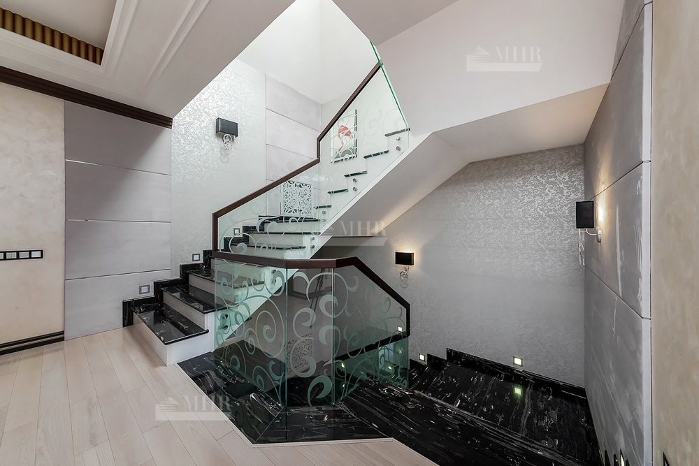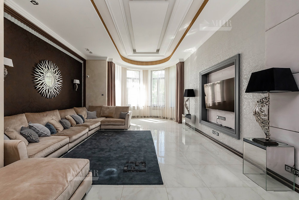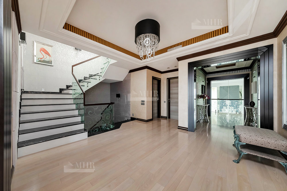 Межкомнатные двери Romagnoli, свет - Италия на заказ. Ковры FENDI, Ralph Lauren. В двухсветной гостиной установлен туннельный камин также выполненный по индивидуальному заказу.