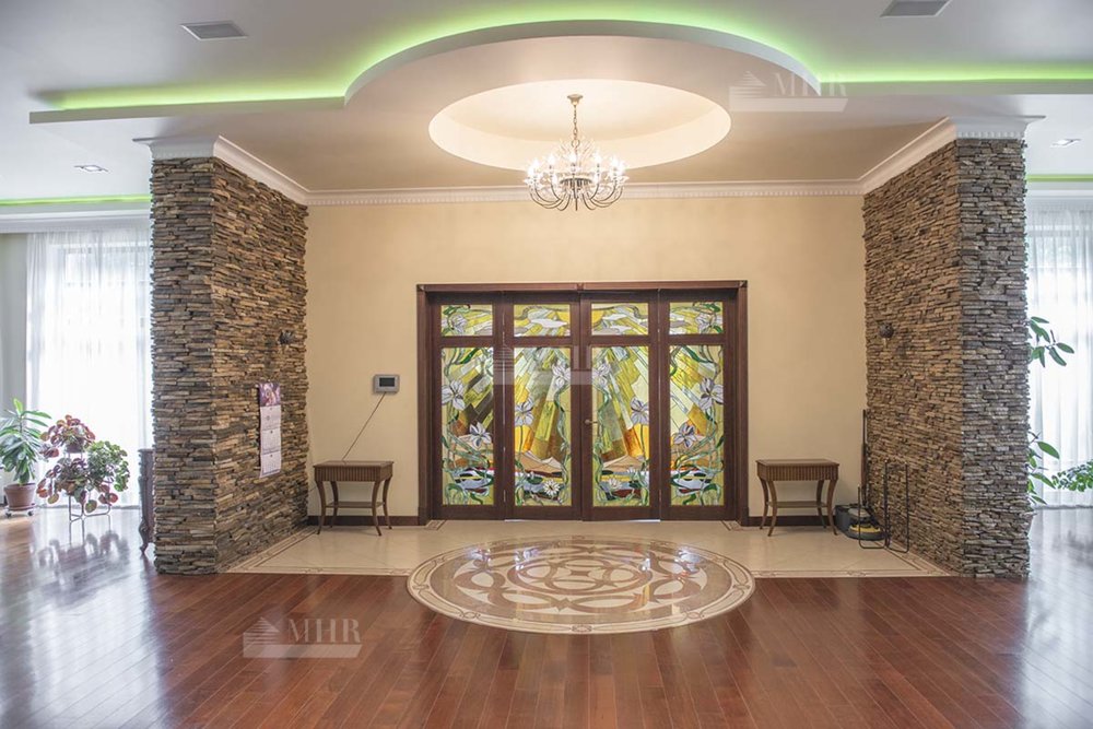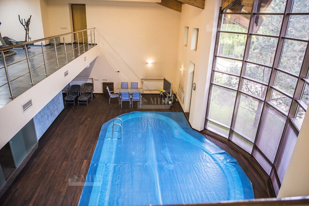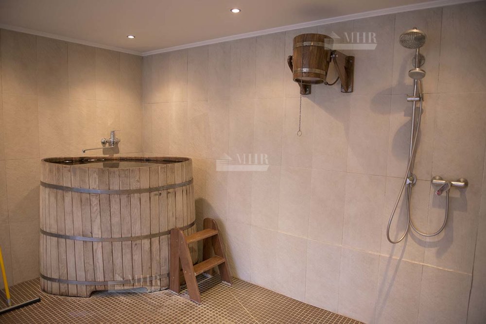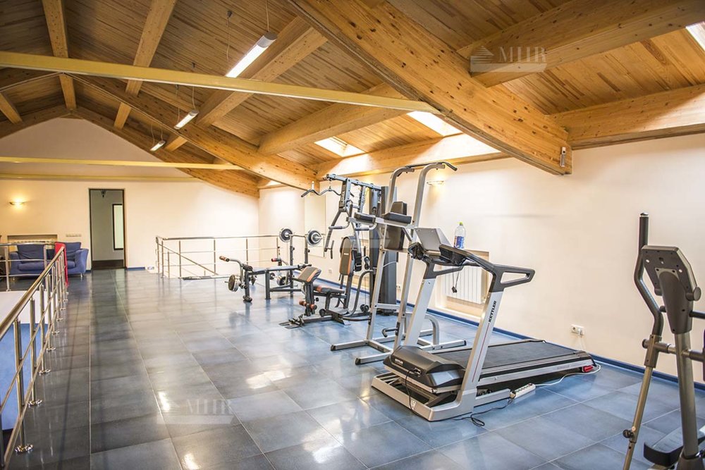СПА: бассейн, тренажерный зал, две гостевых квартиры, русская баня, хаммам, квартира для персонала и гараж на 5 автомобилей.