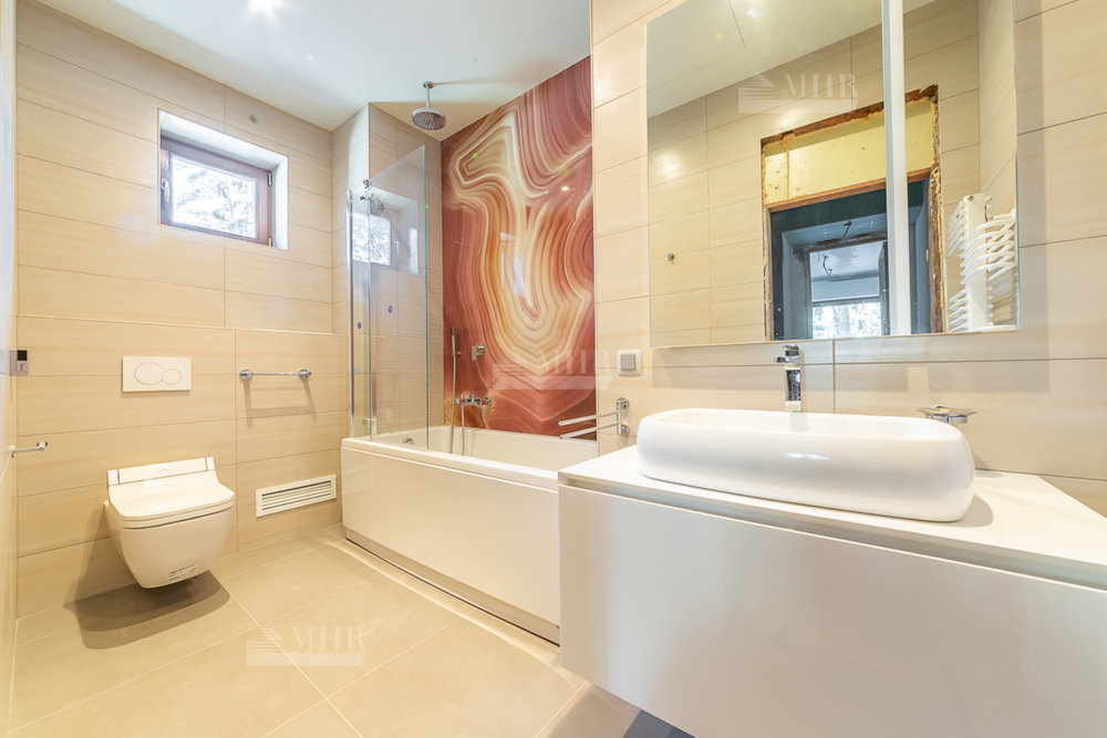 Гараж на 2 машины с большим хранилищем, система очистки воды. Коммуникации все центральные и заведены в дом. Все ванные комнаты и с/у в доме под ключ, цокольный этаж частично. Технические помещения оснащены современным оборудованием: вентиляционная установка для бассейна MENERGA, бойлер, котел газовый Viessmann. Вся проводка в доме устроена на высшем уровне. Дом обогревается. В нем светло и уютно. Все сделано качественно и с расстановкой. Имеется дизайн-проект.