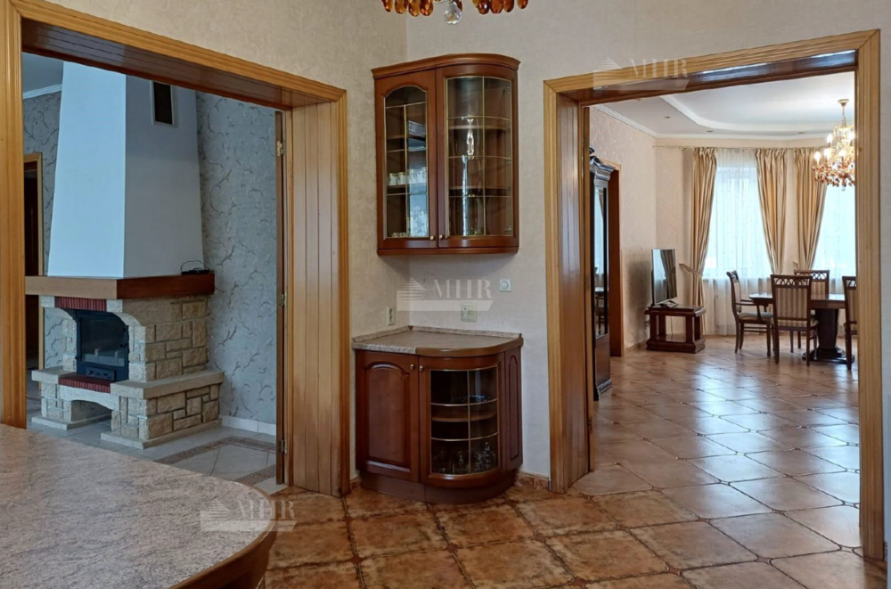 1-й этаж: прихожая, просторный холл, кухня, столовая, гостиная с камином и выходом на открытую террасу, кабинет, кинозал, санузел с душевой кабиной и постирочной, котельная, кладовая, вместительный погреб;