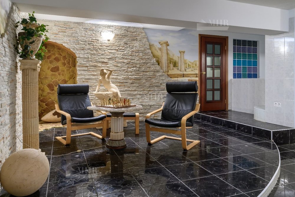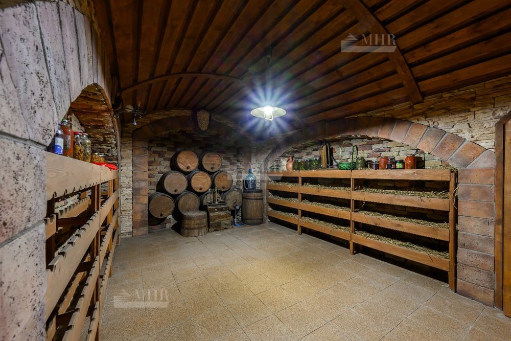 Цоколь: комната отдыха, сауна, раздевалка, душ, восточная комната, винный погреб, технические помещения: 2 кладовые, постирочная, котельная;