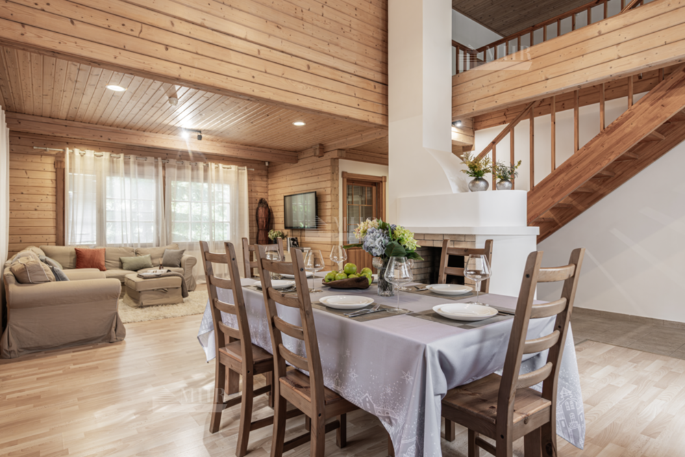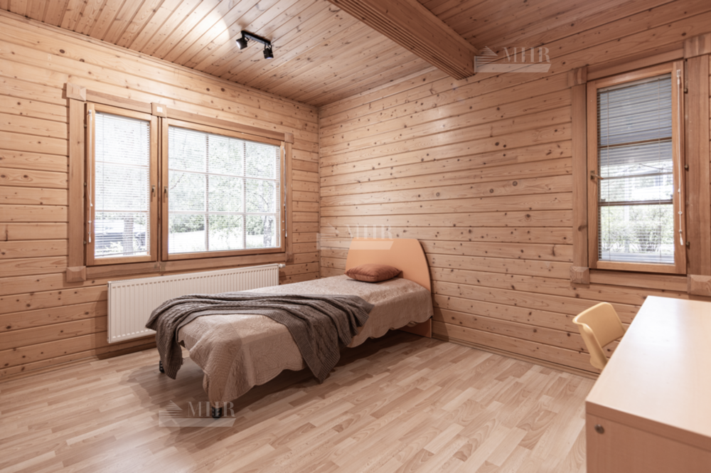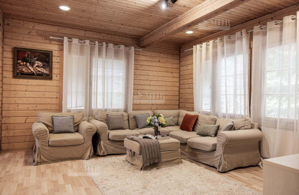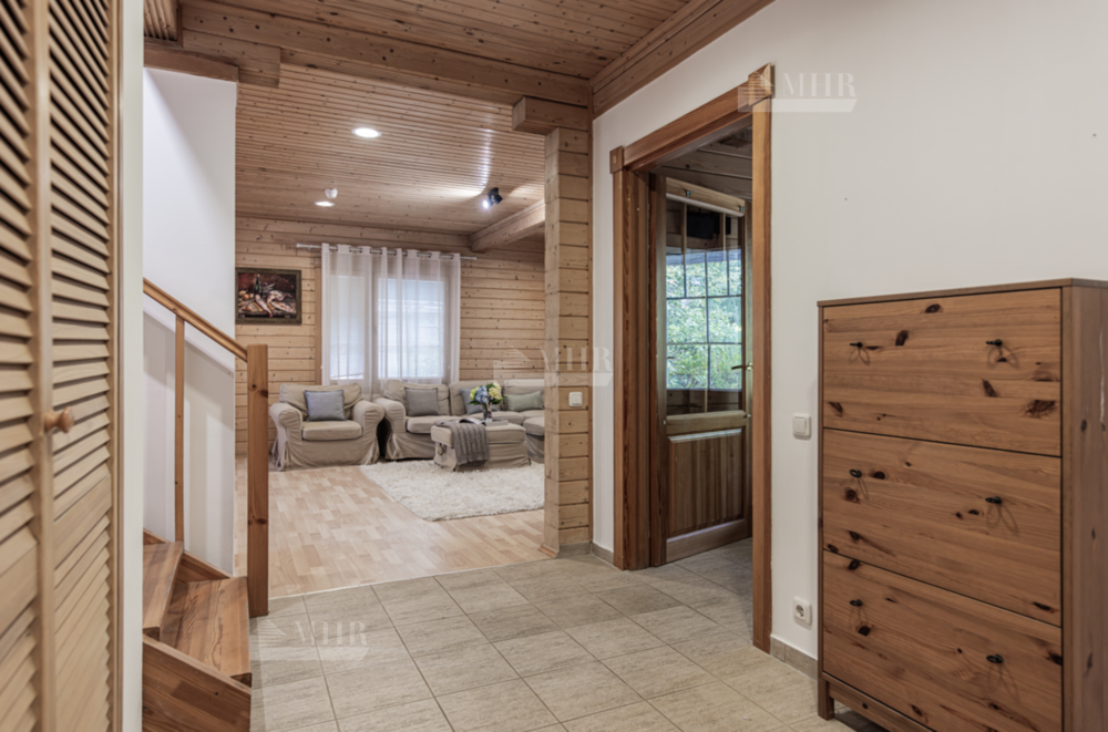 Продается прекрасный дом из финского бруса в элитном эко-поселке с уникальным микроклиматом, все дома в нем возведены в единой стилистической финской концепции, по  европейскому стандарту комфортной жизни и без заборов внутри. Общая ухоженная зеленая территория, пруд, детская площадка и теннисный корт. Дом  9*15, 2 этажа, в очень хорошем состоянии, после косметического ремонта. Сауна новая. Общее состояние бруса идеальное! Ландшафт в общем едином стиле, очень зеленый.