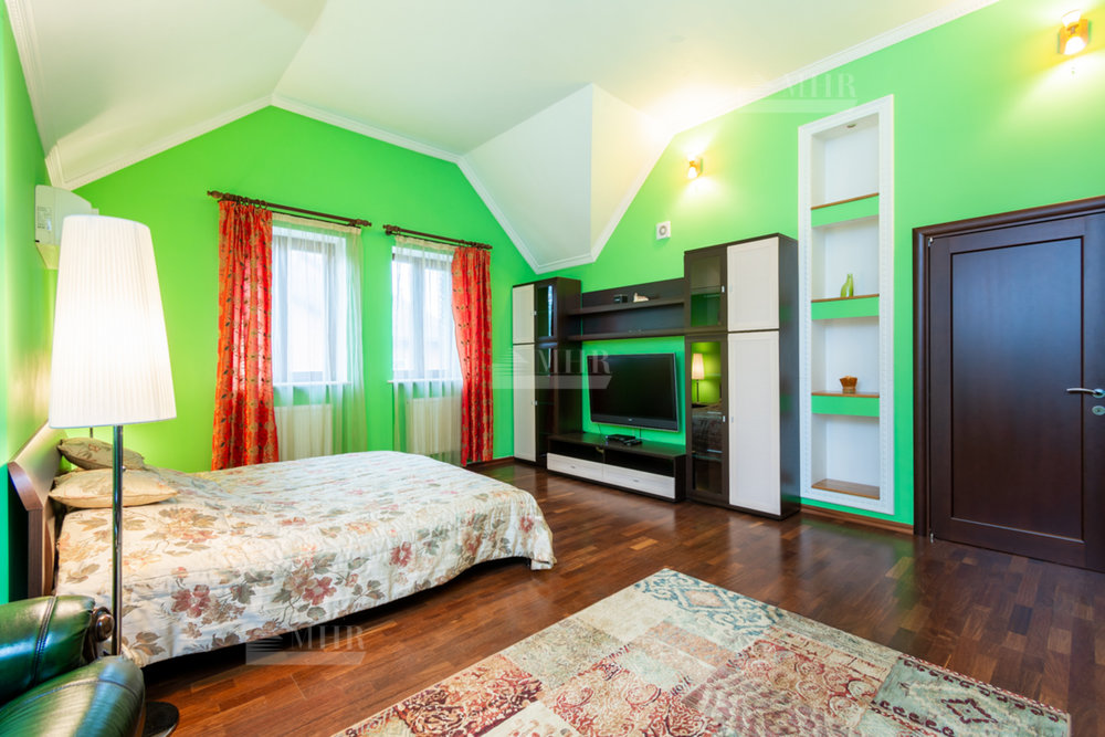 Хороший, зеленый участок. Много плодовых и хвойных деревьев. Отдельное строение (80 кв.м)- гараж на две машины с квартирой для прислуги. Летняя крытая беседка с мангалом и кухней. Парковка на 5 м/м. Возможна аренда от 3х месяцев.
