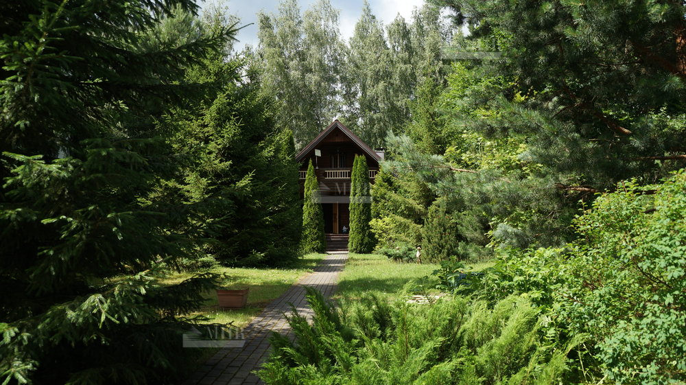 Участок граничит с лесом. Плодовые молодые деревья, сосны, ели, туи, цветы, кустарники, крыжовник, черешня, смородина, малина, на всем участке газон. На участке дом под снос или реконструкцию.