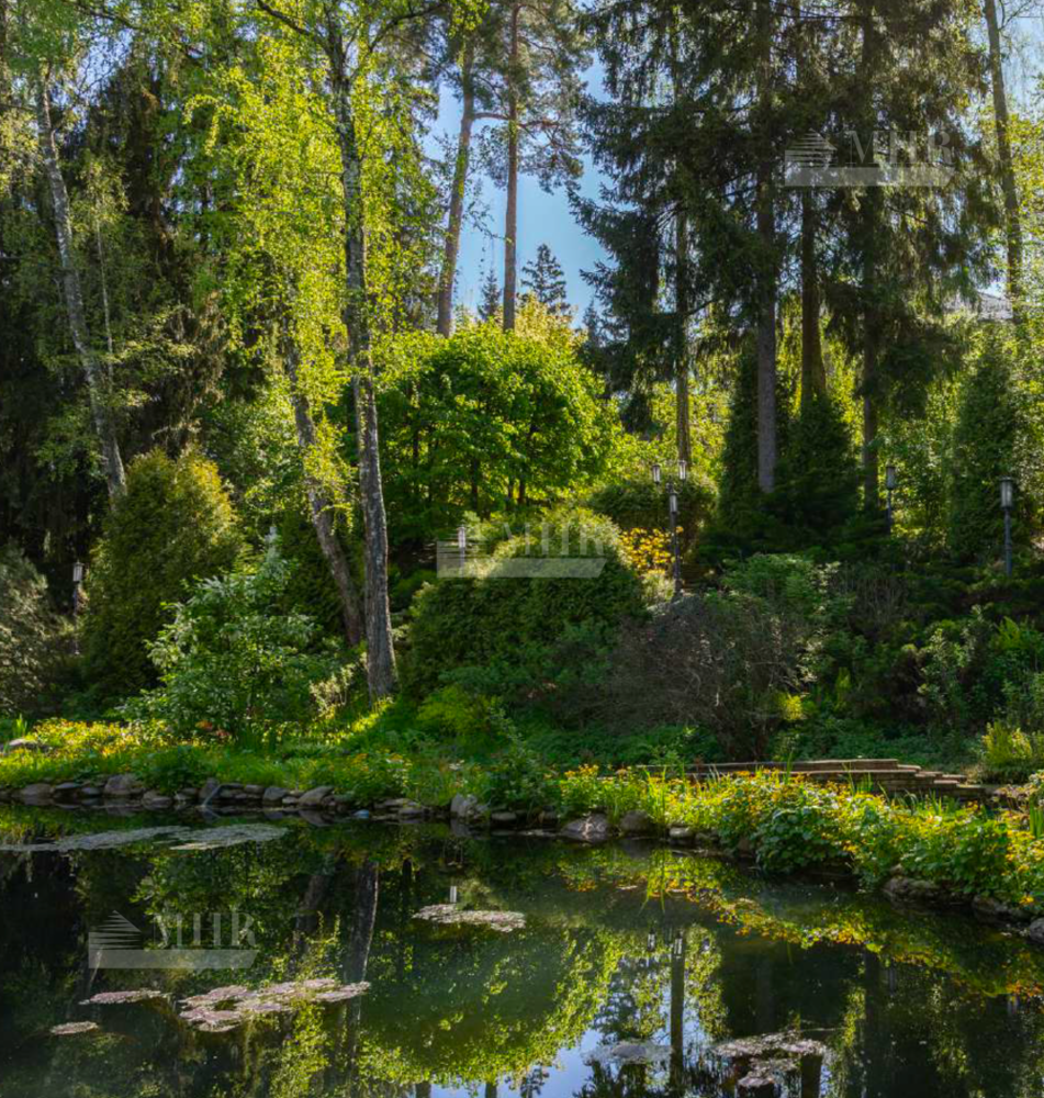 Участок утопает в зелени вековых деревьев, создавая ощущение полной приватности. На территории собственное озеро, редкая возможность для создания зоны отдыха прямо у воды и собственный выход к большому озеру. Проложены дорожки среди вековых деревьев. Беседка, утопающая в густой зелени. Скульптуры на территории.