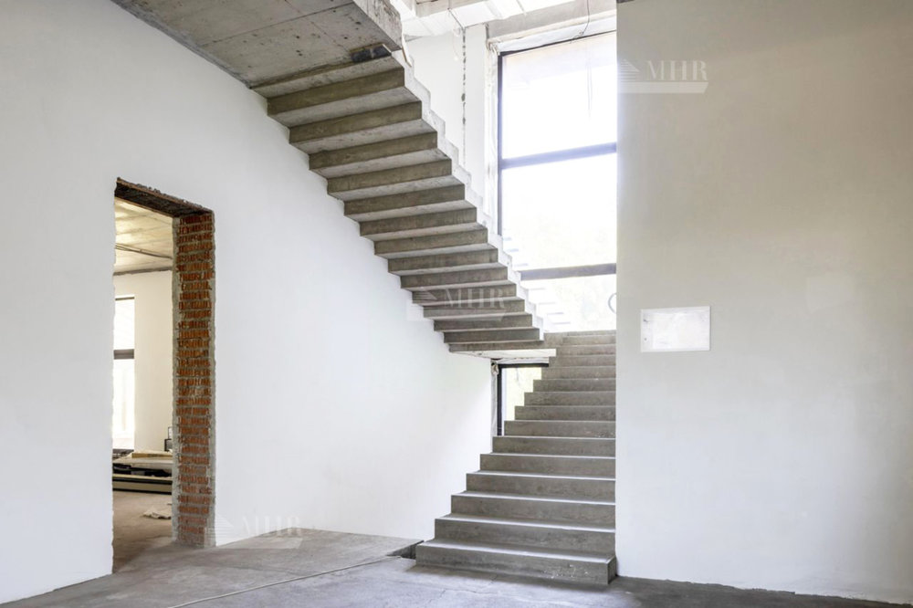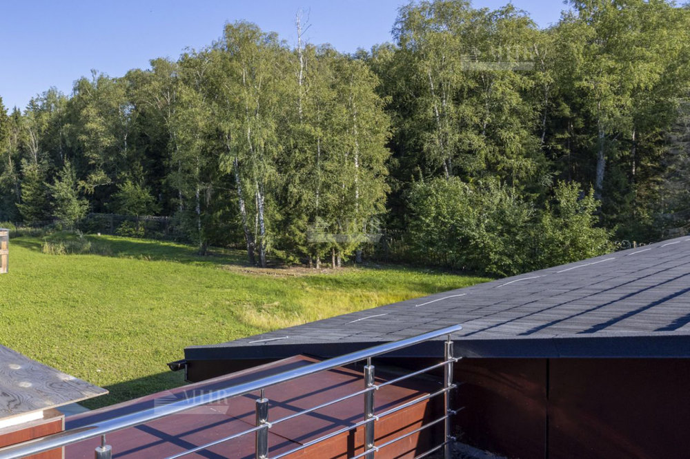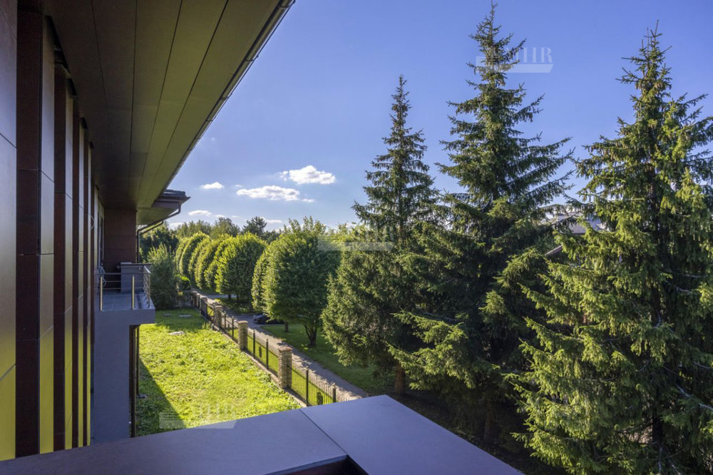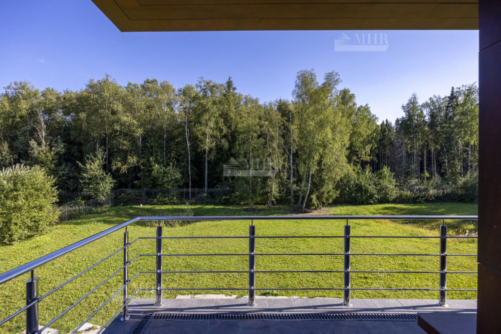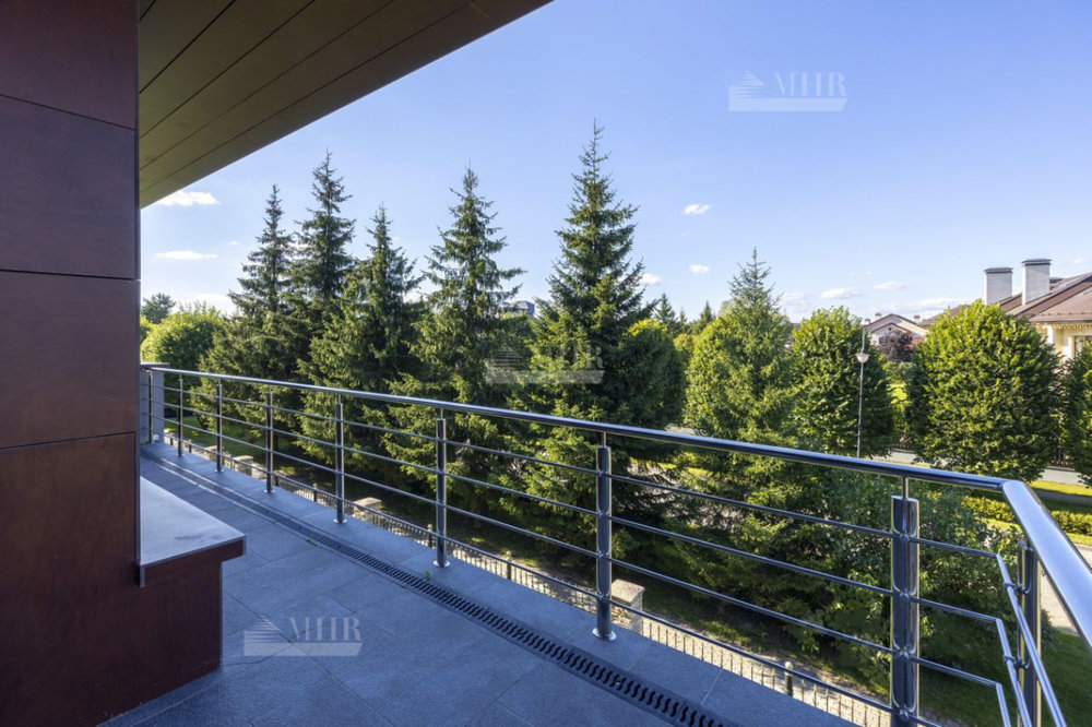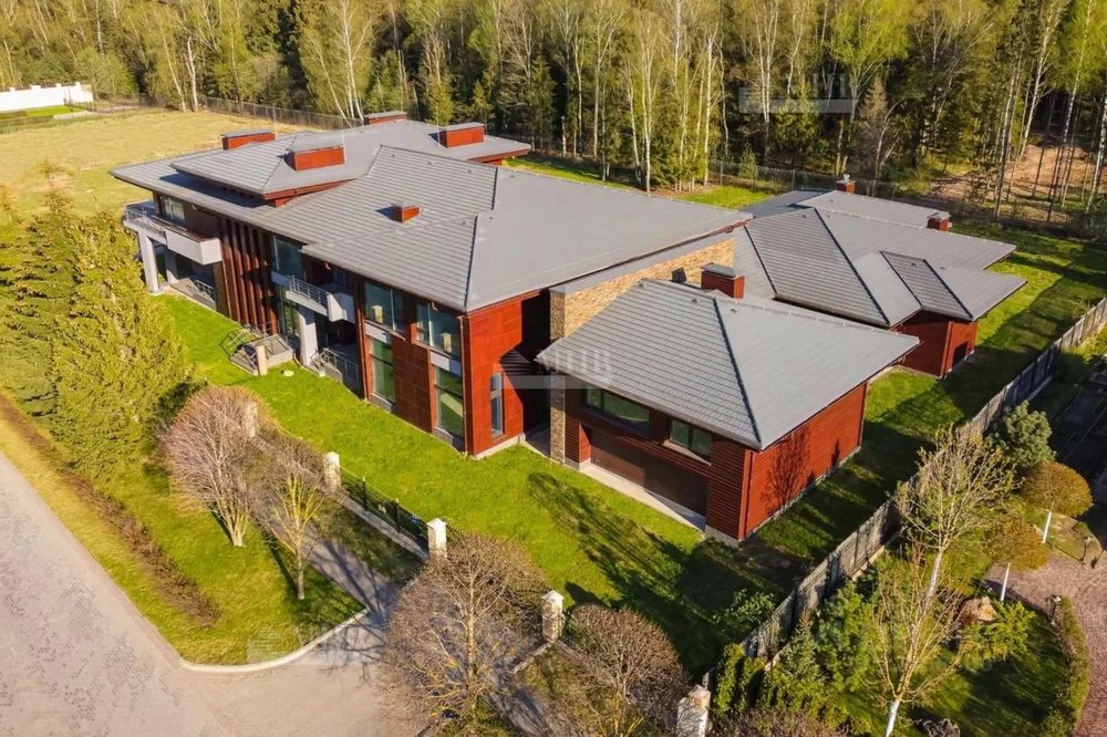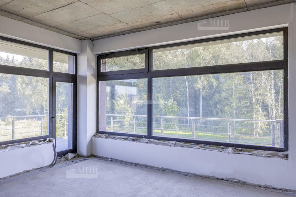 Просторный особняк в поселке Гринфилд выполнен в современном стиле. Фасад облицован шпонированными панелями с долгосрочной защитой от негативного воздействия окружающей среды; часть дома облицована итальянскими панелями из натурального камня. Дом остеклен противовандальными окнами с защитой от проникновения.