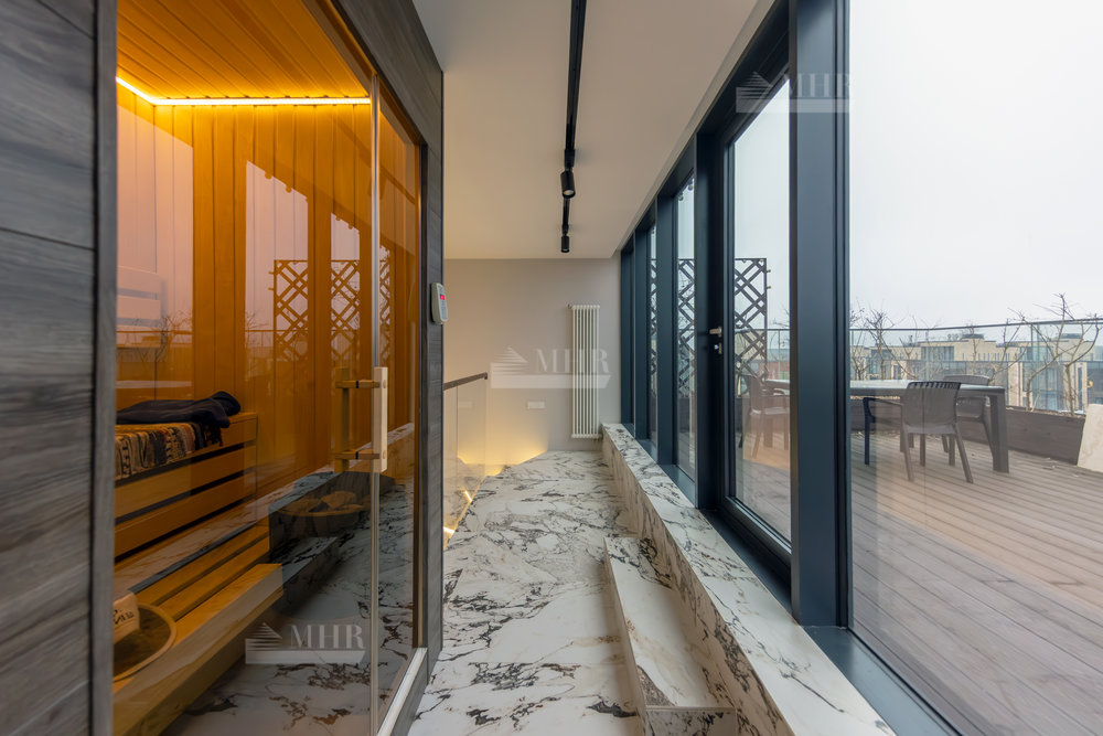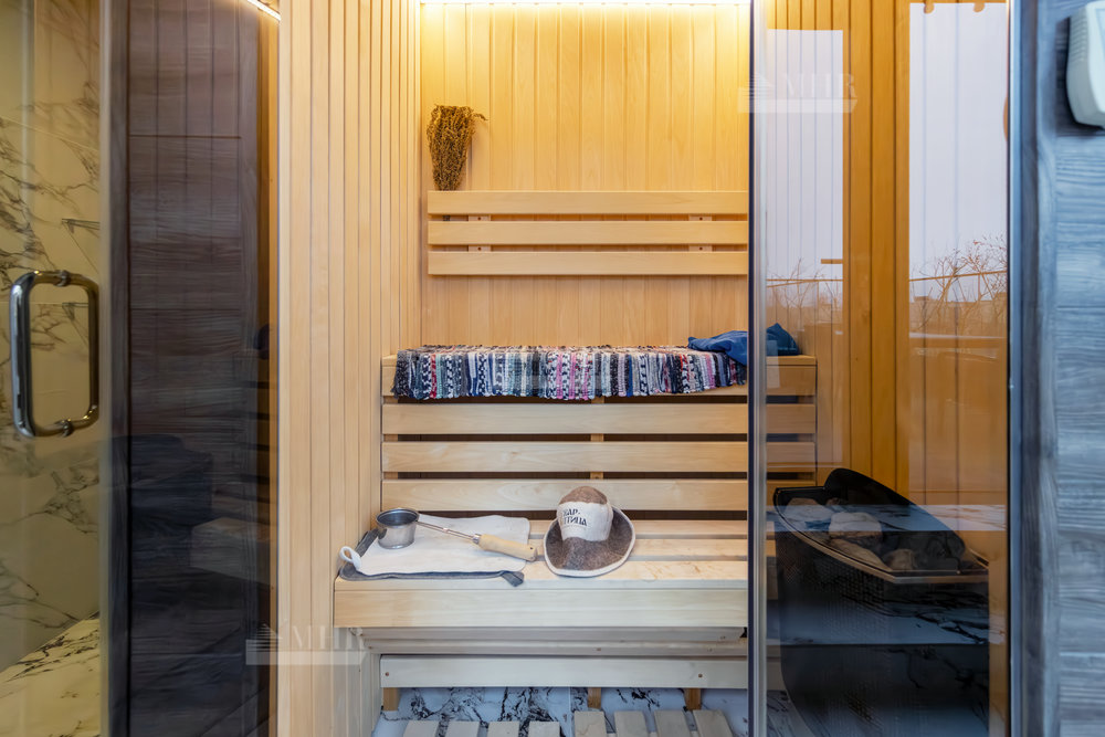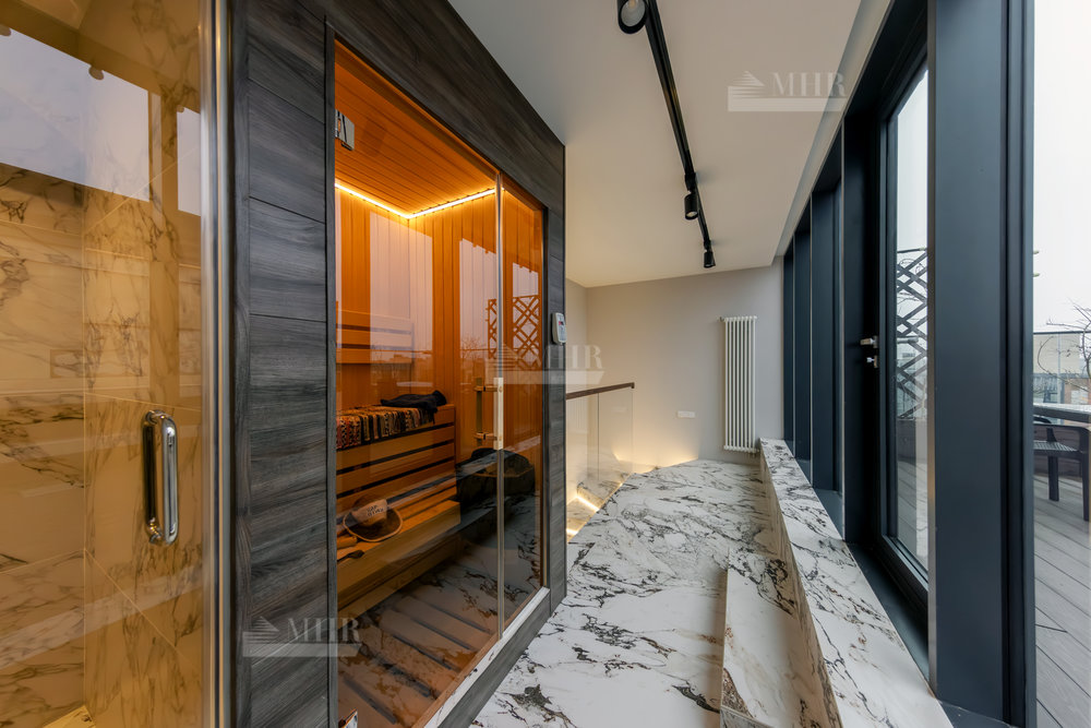 4-й этаж: сауна, с/у, душ, выход на кровлю, на которой стоит уличная мебель.