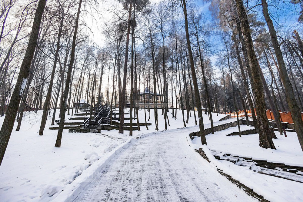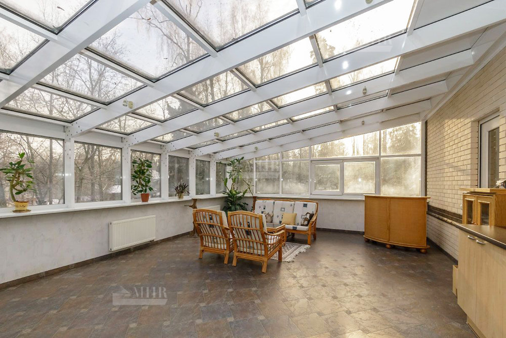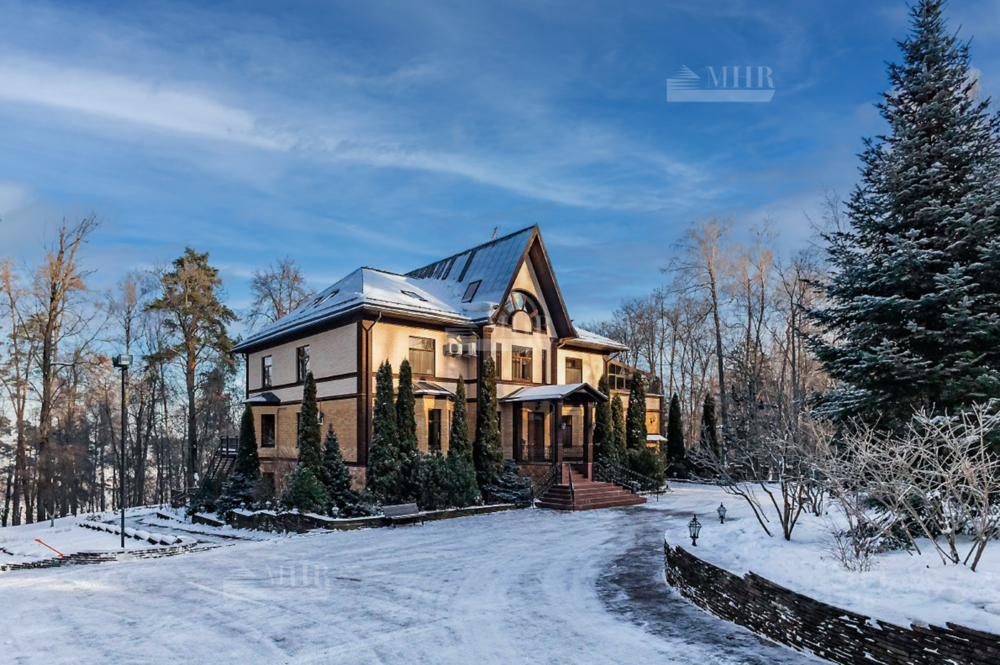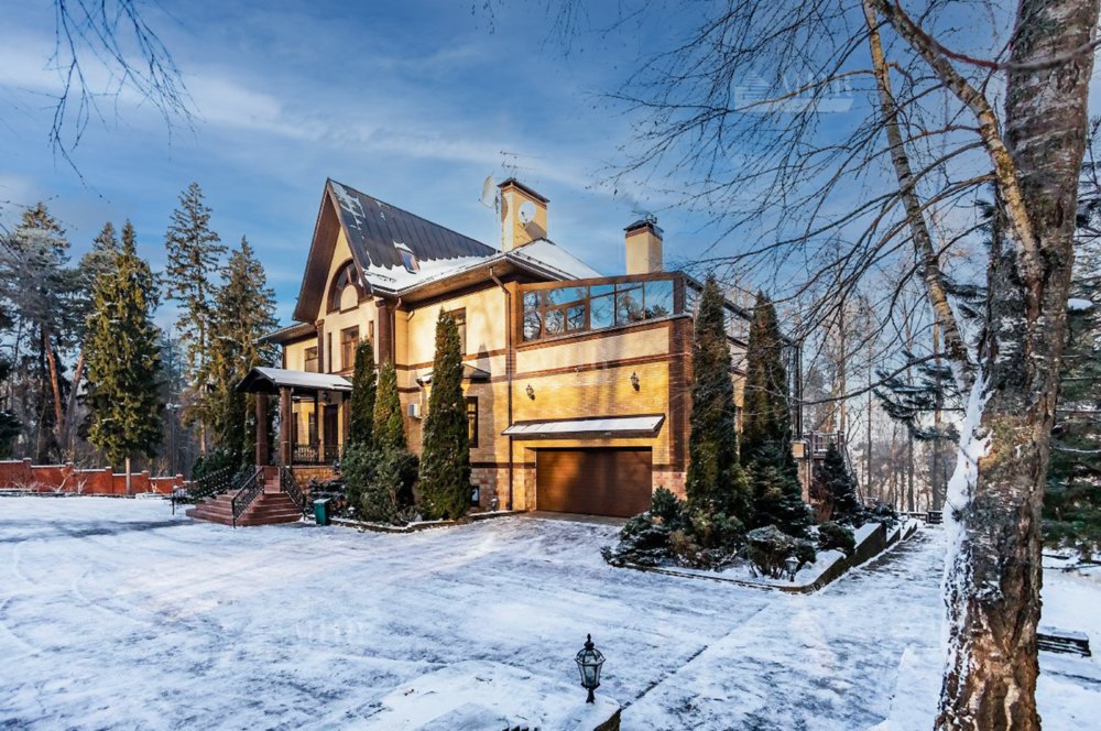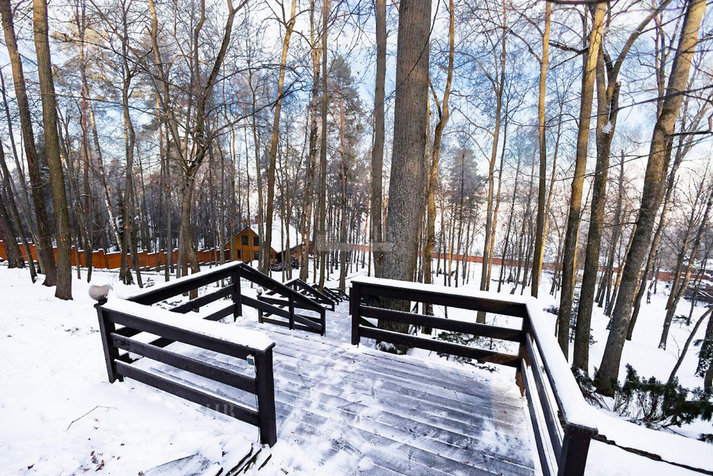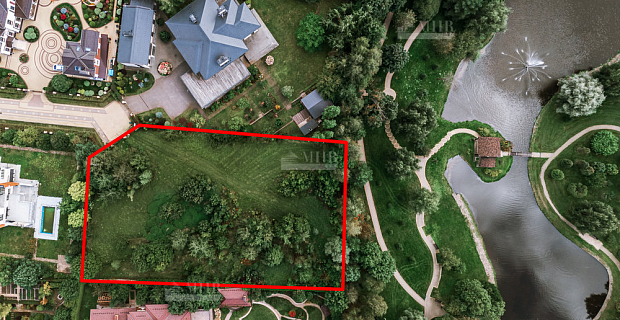 Шикарный рельефный участок в окружении леса с ландшафтным дизайном и дорожками для прогулок, теннисным кортом, сад с плодоносящими деревьями и теплица, вольер для собак. По периметру территории кирпичный забор, установлены камеры видеонаблюдения.