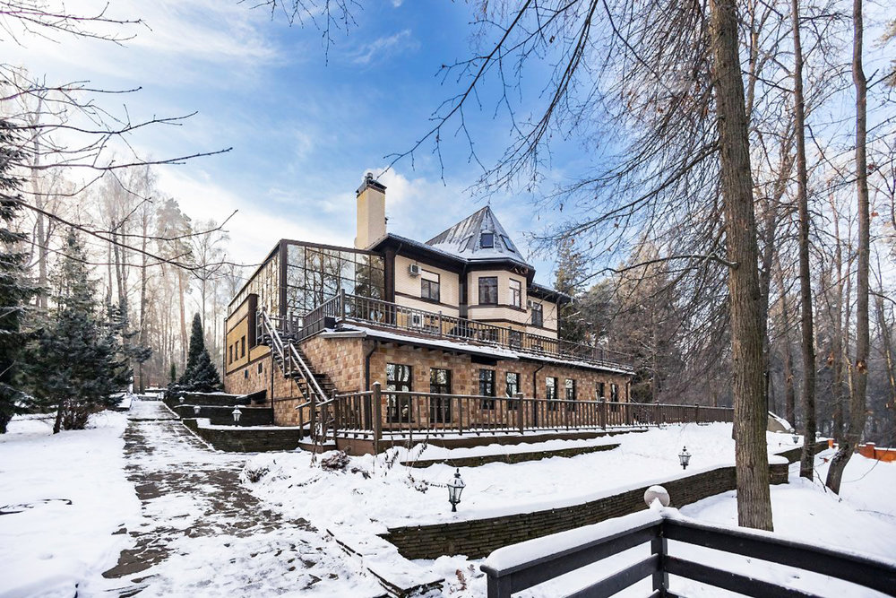 Главный дом, располагающийся на самой высокой точке участка, благодаря естественному рельефу участка имеет красивый вид на окружающие усадьбу пейзажи. Для удобства владельцев и гостей оборудован лифт.